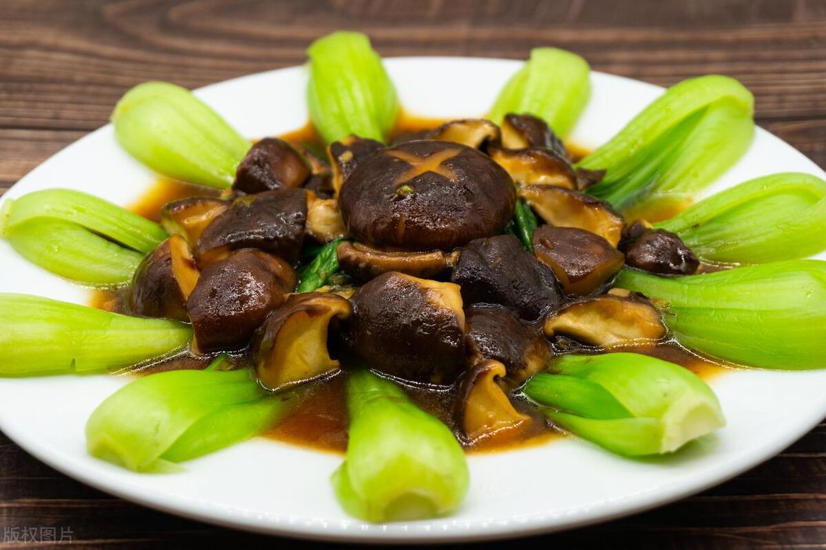 - 鍋中倒入適量食用油,油熱後放入蔥絲、薑末、蒜末爆香。加入香菇翻炒均勻,倒入調好的料汁,煮至湯汁濃稠。放入青菜翻炒均勻,使青菜裹上湯汁即可出鍋裝盤。