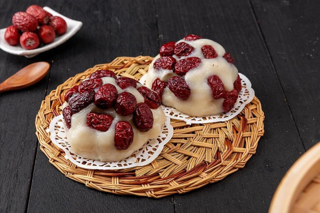 蒸年糕得用糯米粉,把糯米粉準備好,然後往裏面倒水,開始攪拌,開始揉麪,把麪糰揉好之後,將其分成數個小麪糰,每一個都做成年糕,然後把紅棗稍微清洗一下,粘在年糕上,隨後放在鍋中開始蒸,全程大火,上汽後繼續蒸18——20分鐘,出鍋。