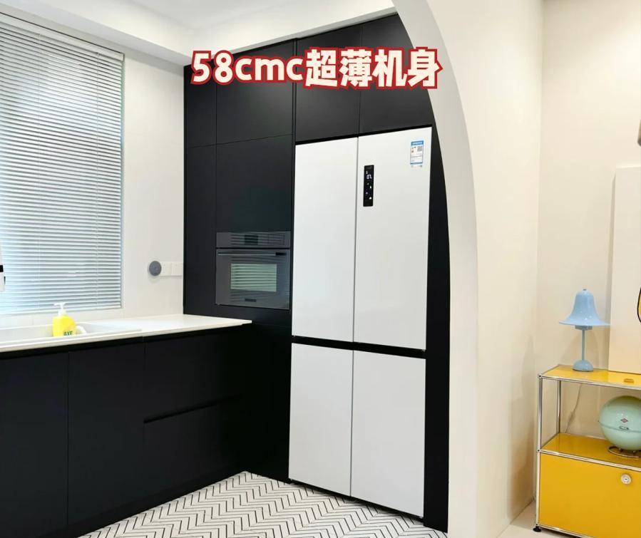 比如要是做了嵌入式裝修,櫥櫃全都是一體化定製,選冰箱就得注意尺寸。像我家冰箱的厚度只有58cm,非常靈活,只要是按照60cm默認標準設計的櫥櫃深度,都能完美嵌入;當然了,就算不嵌入,也還是儘量考慮薄一點,省空間也美觀。