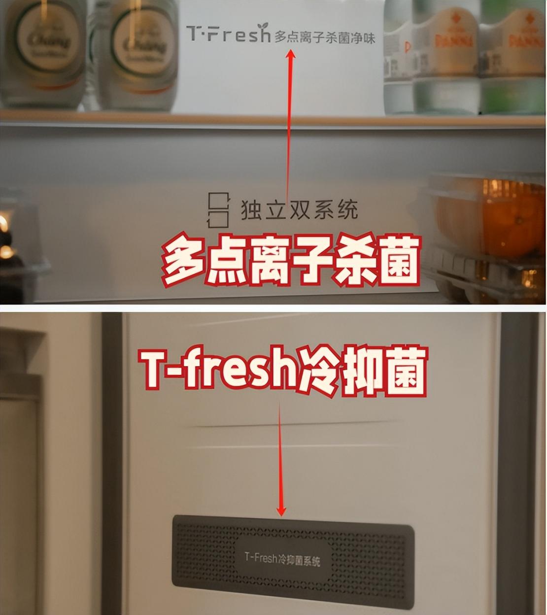 TCL T9 Pro在冷藏室和冷凍室分別搭載的多點離子殺菌和T-Fresh冷抑菌就是主動除菌淨味功能,對於細菌病毒能做到99.98%殺滅率,除味率也有99.8%,讓防串味效果更全面。