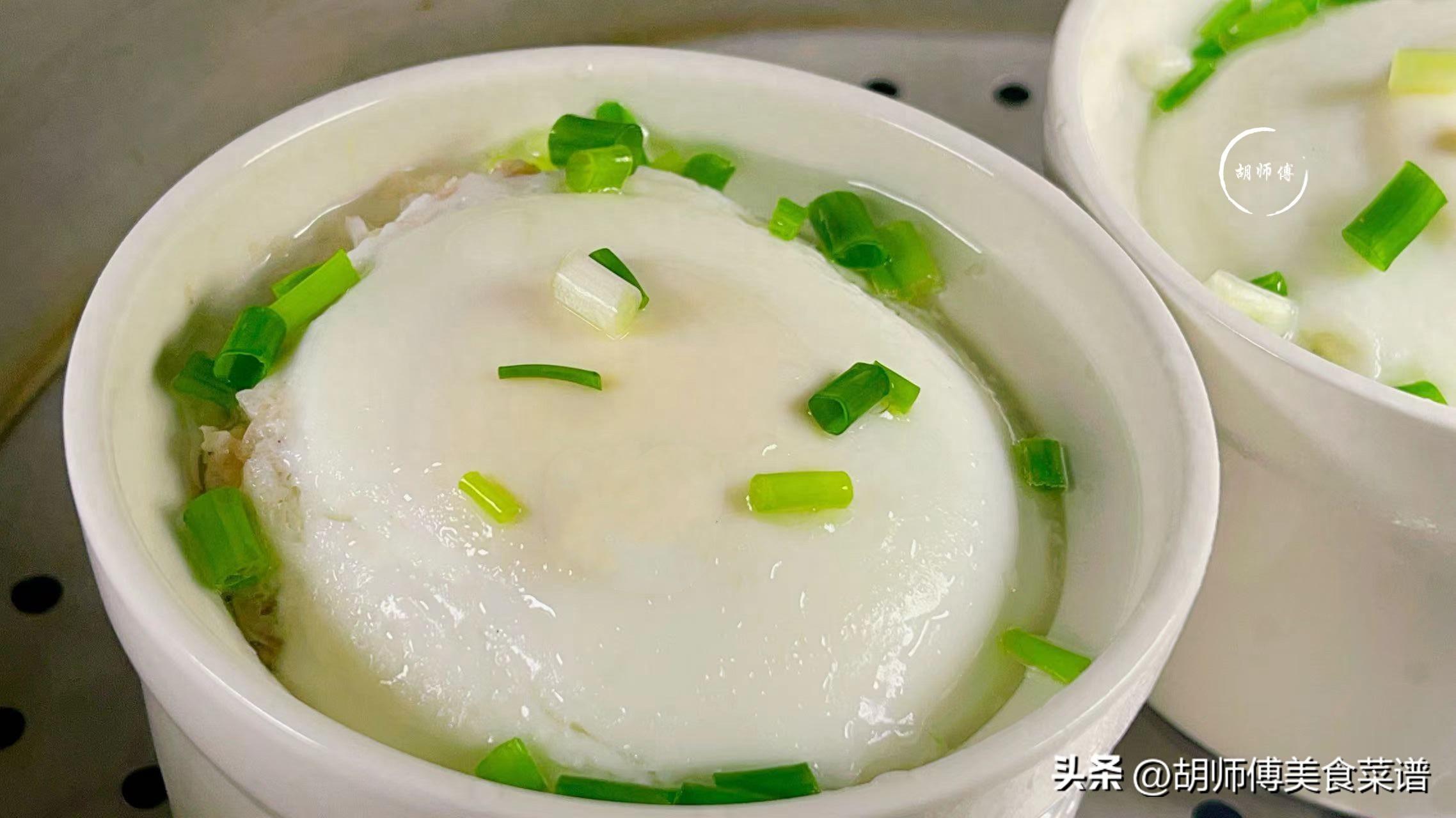 第四步:15分鐘後關火,將少許香油、蔥末放入雞蛋上即可食用,剛出鍋的山藥肉末雞蛋羹是最好喫的。