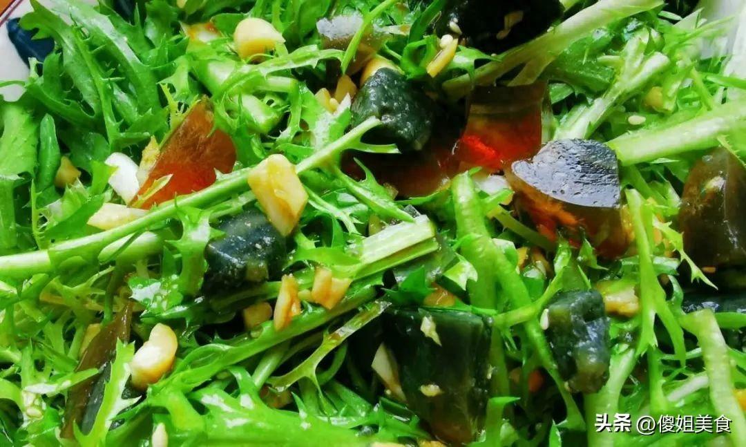 具體做法:1、苦菊去根掰散,用清水淘洗3遍(葉子裏容易藏沙),撈出後甩幹水,泡冰水5分鐘(葉子更支棱!)瀝乾水分撕成小段,墊在碗底。