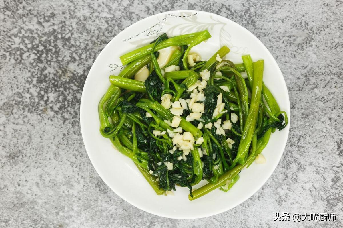 食材:空心菜500克,蒜末30克,鹽、食用油適量。