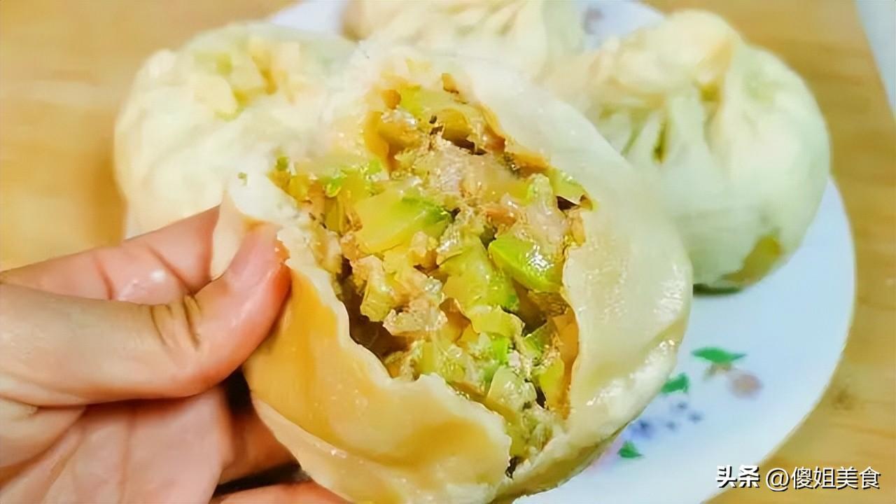 但要說終極喫法,還得是西葫蘆包子。我專門跟樓下山東大姨偷師:選肥瘦相間的五花肉剁成石榴籽大小,西葫蘆擦成絲用鹽殺出水,擠幹後和肉餡攪在一起。重點是要加勺現炸的蔥油,麪皮要擀得中間厚四周薄,蒸出來的包子咬一口,肉汁混着西葫蘆的清甜在嘴裏爆開,我家那口子說這味道"給個縣長都不換"!