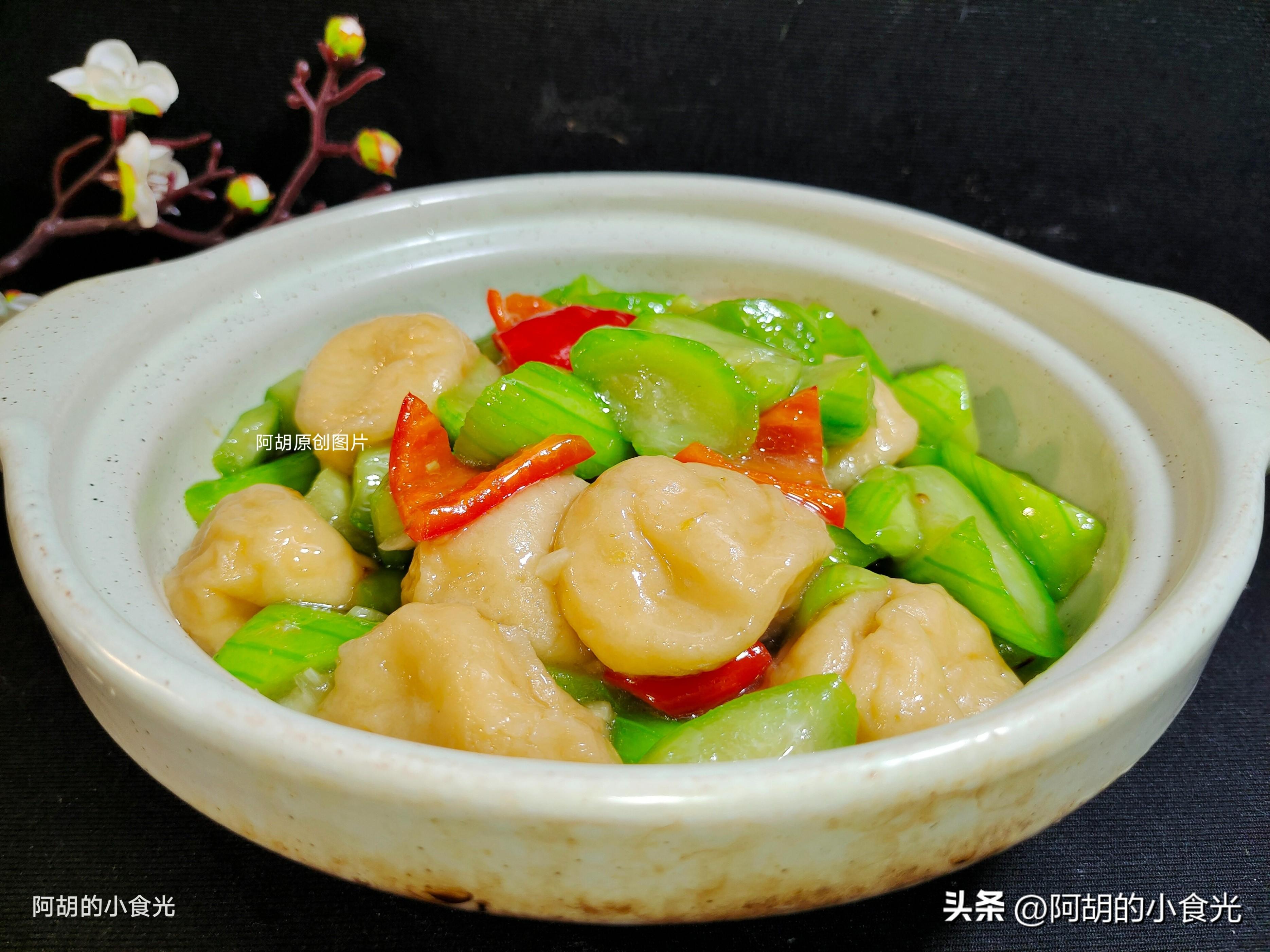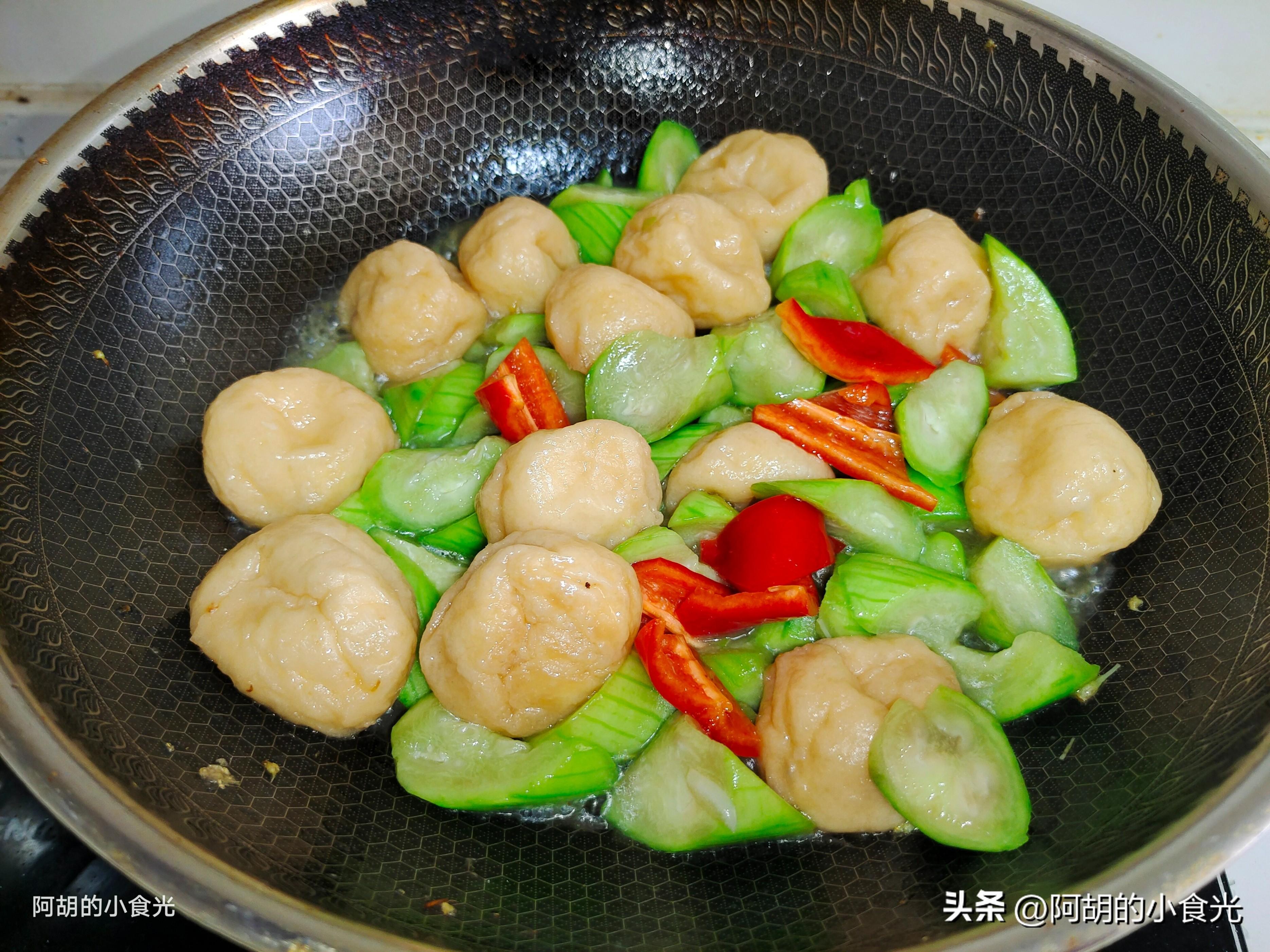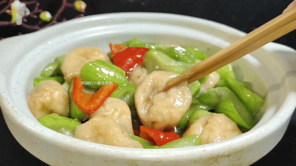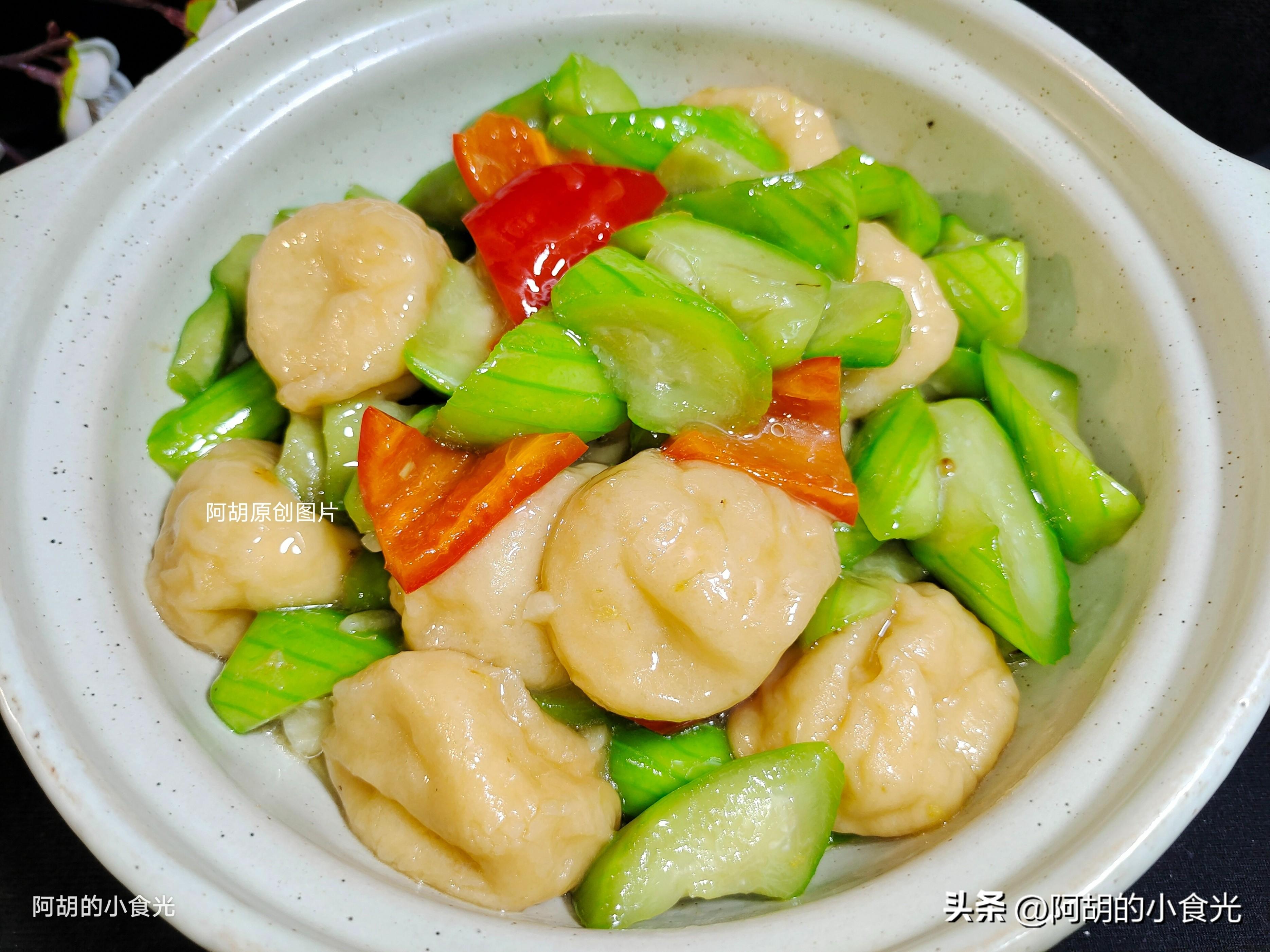 第七步:最後用涼水稀釋一些幹澱粉,攪拌均勻後淋入鍋中,保持大火翻炒均勻,讓剩下的湯汁濃稠起來裹住食材就可以出鍋裝盤了。很是清爽開胃的一道小菜,魚腐鮮美軟嫩中帶有些許嚼勁,絲瓜鮮甜入味,妥妥的一道開胃下飯好菜,感興趣的一定要試一試這個做法。