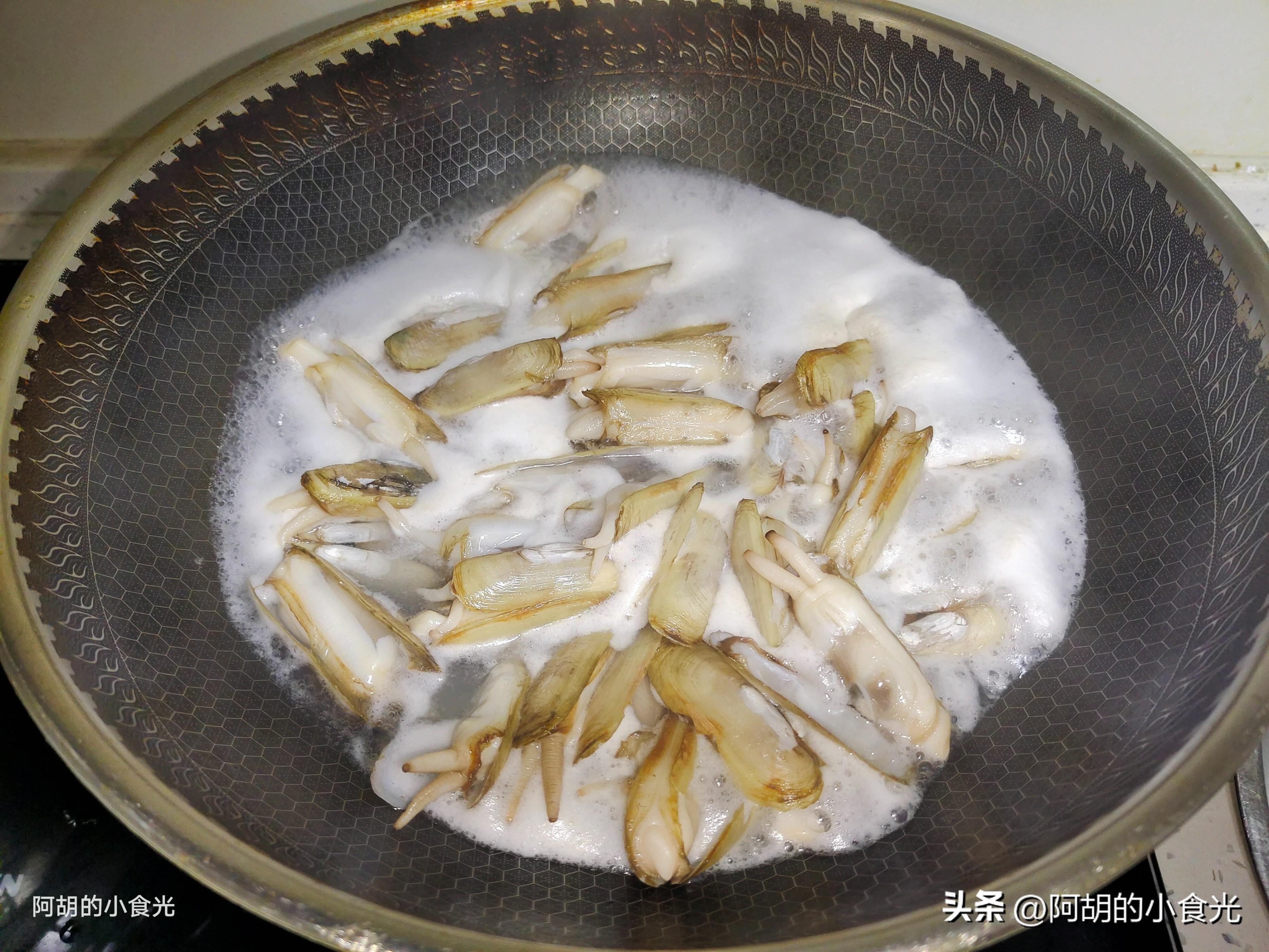 此菜的主要鮮味來源之一就是煮蟶子的湯,所以蟶子要提前處理乾淨,讓其吐吐泥沙,搓洗乾淨外殼,最後湯汁還有靜置沉澱一下,防止有一些碎殼混入其中。