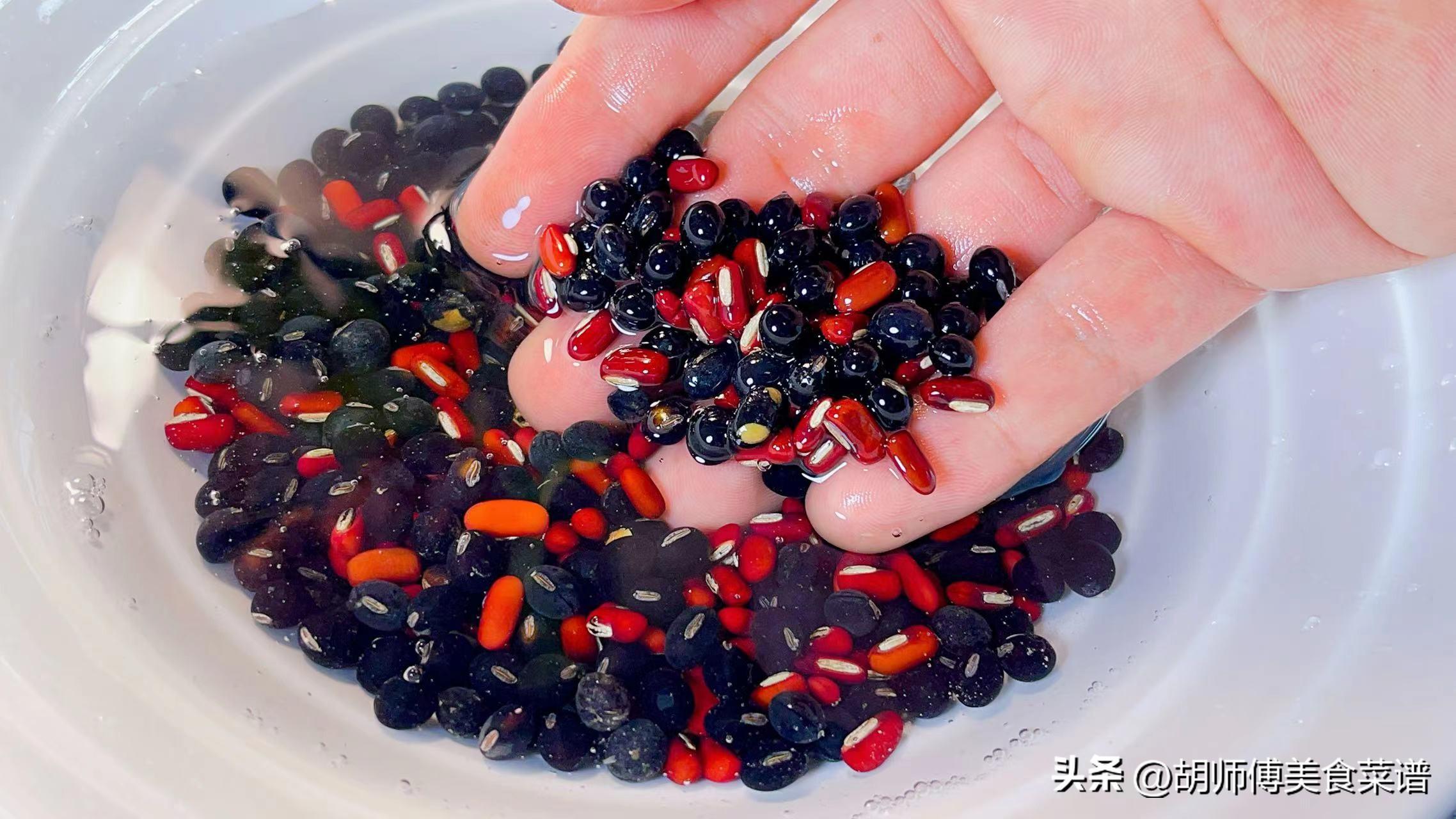 第一步:將準備的黑豆、綠豆、赤小豆全部放入冷水中浸泡3小時左右,時間到後,把它們撈出,再用自來水沖洗乾淨。