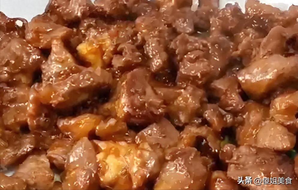 - 五花肉煸炒出油,加冰糖炒糖色至焦黃