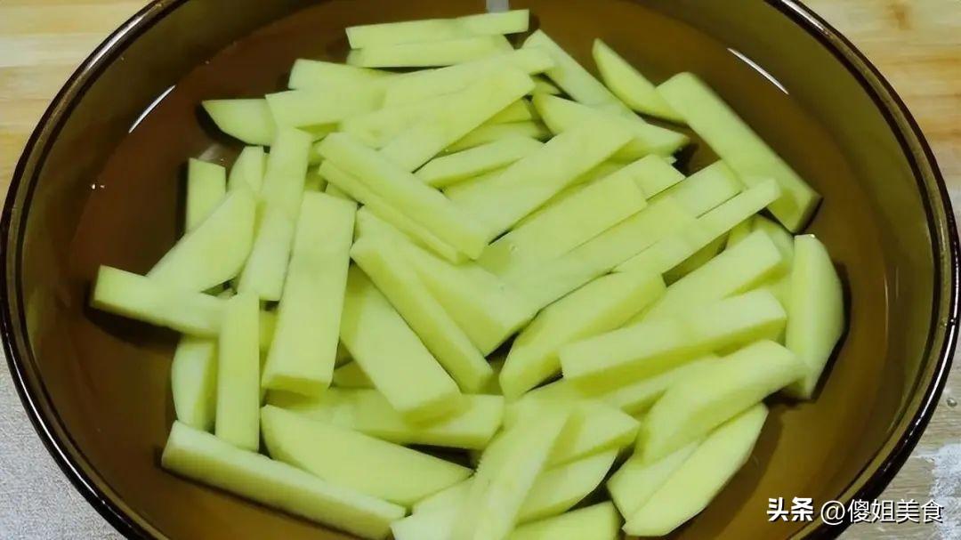 具體做法:1、剛買回的豆角別急着下鍋!揪掉兩頭時順着撕下兩側老筋,這步千萬不能省——帶筋的豆角就像喫芹菜不撕絲,塞牙還影響口感。折成食指長的段,泡淡鹽水10分鐘,蟲子髒東西全跑光!選黃心土豆削皮後,先切1cm厚片,再改刀成小拇指粗的條。別切太細!燉久了容易碎成渣。切好立刻泡清水,搓掉表面澱粉,炸出來更酥脆還不粘鍋。
