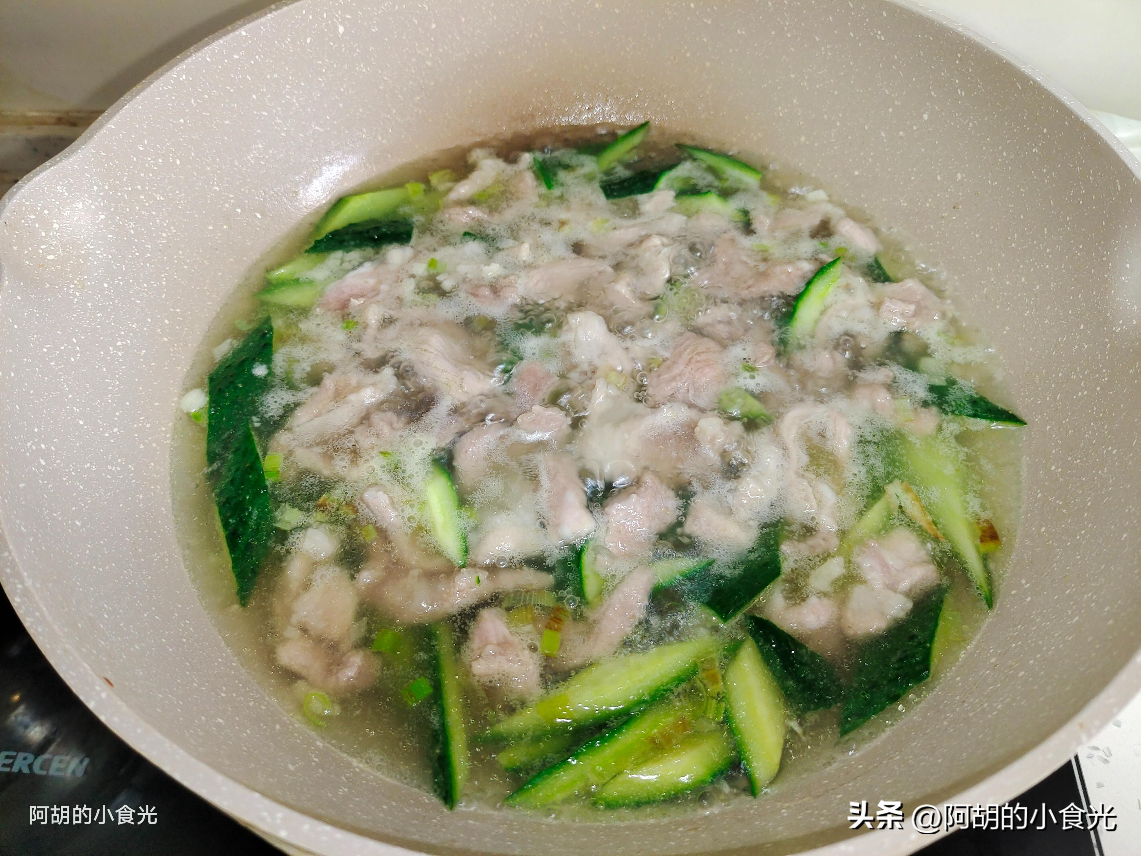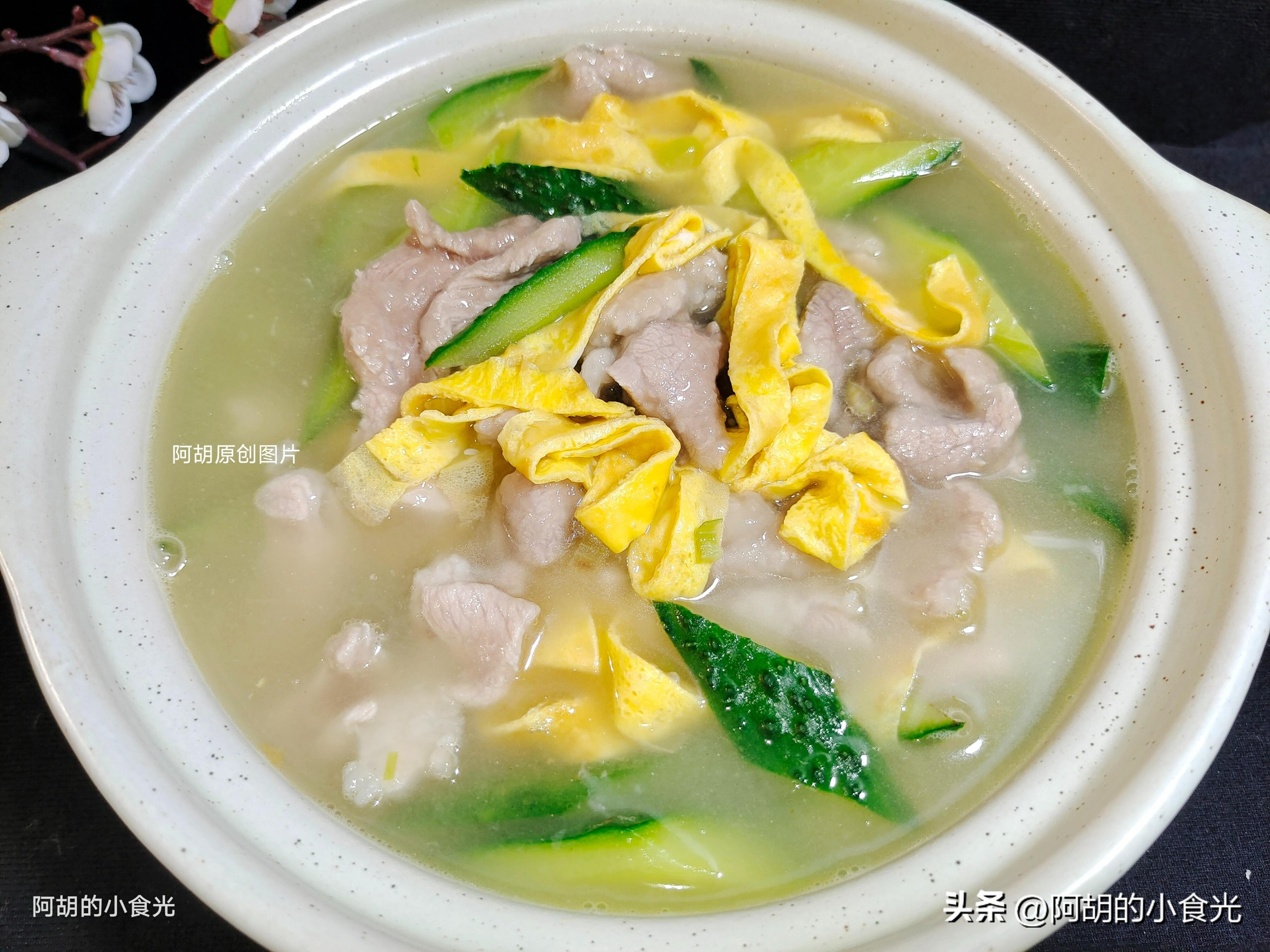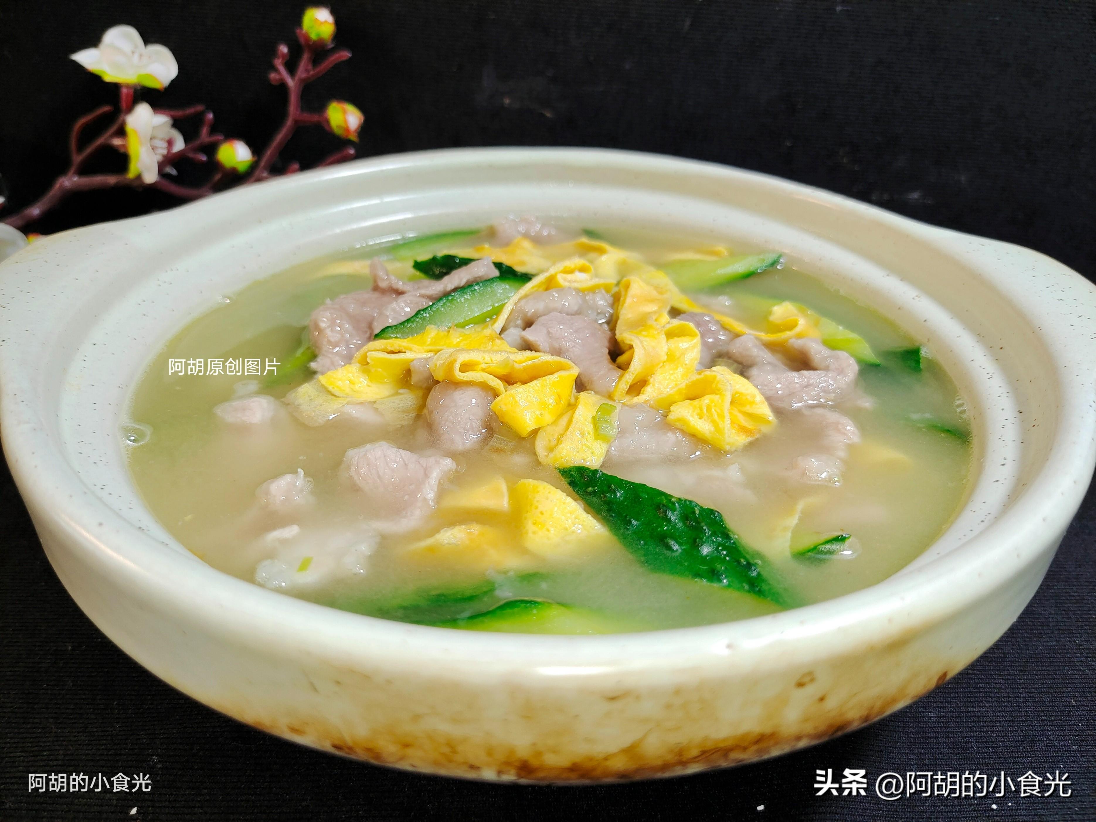 今天這道湯的主要食材由黃瓜+肉片+雞蛋這三種食材組合而成,成菜的味道和口感就是清香不油膩,爽口又開胃,其中的肉片被處理的滑嫩入味,喝湯喫肉太舒服。