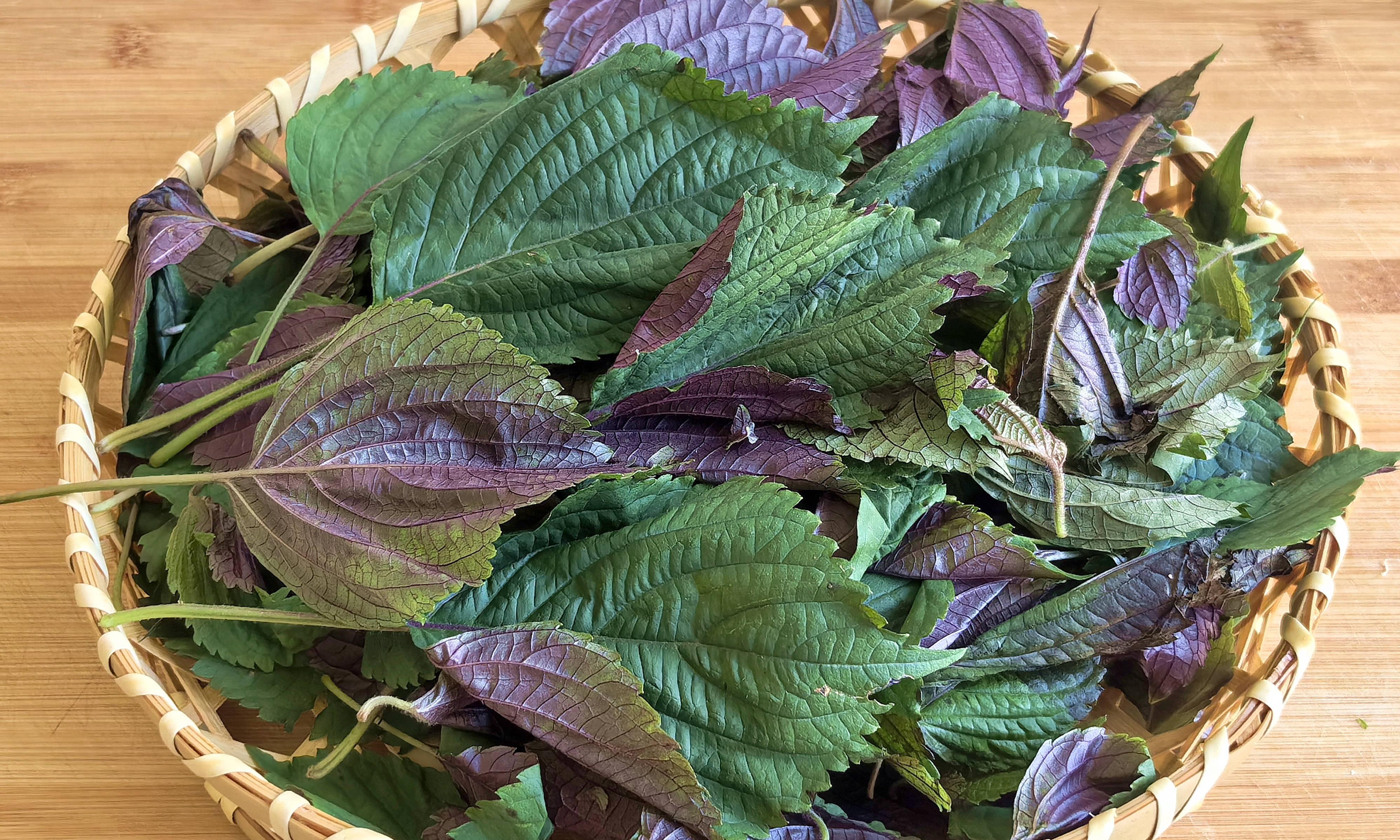 菜市場裏那一筐筐紫盈盈的葉子可別錯過!紫蘇葉自帶的紫蘇醛,有一定的殺菌作用。最妙的是它那股子特殊香氣,比香水還撩人,熱得沒胃口時聞一聞,保管你口水直冒。