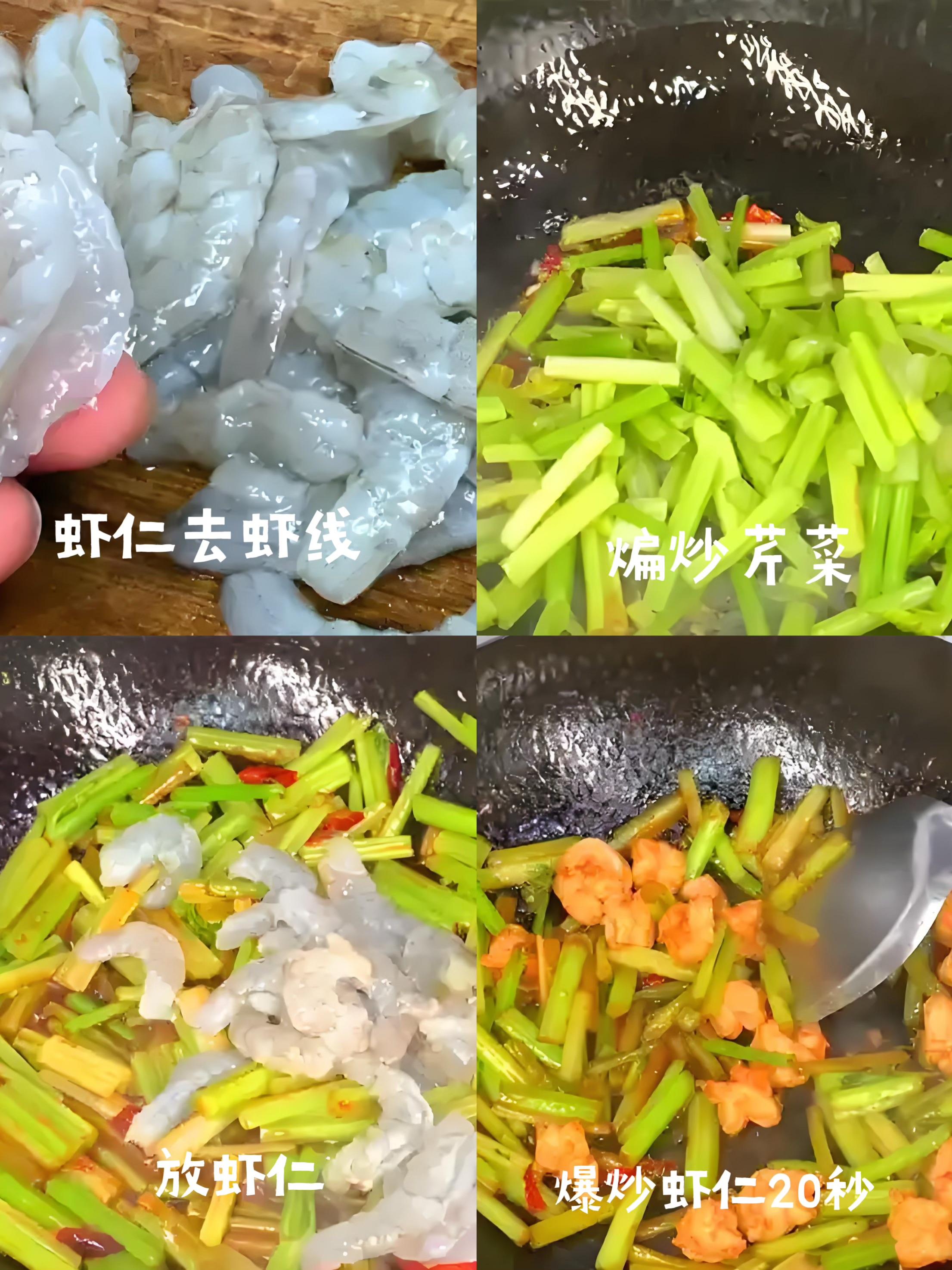 - 西芹撕掉老筋,斜刀切段,焯水30秒過涼更脆