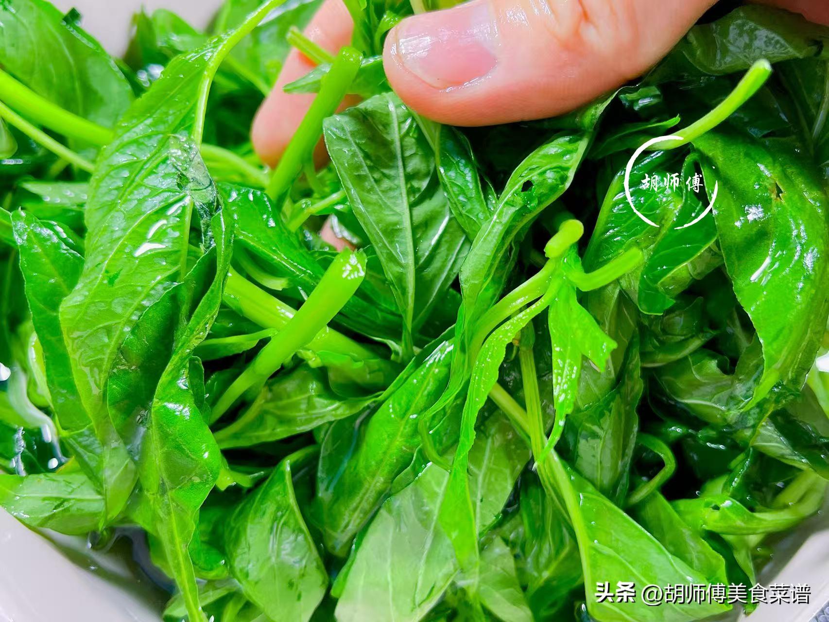 【食材準備】:野莧菜500克、蒜末10克、豬油15克、食鹽、雞精適量。