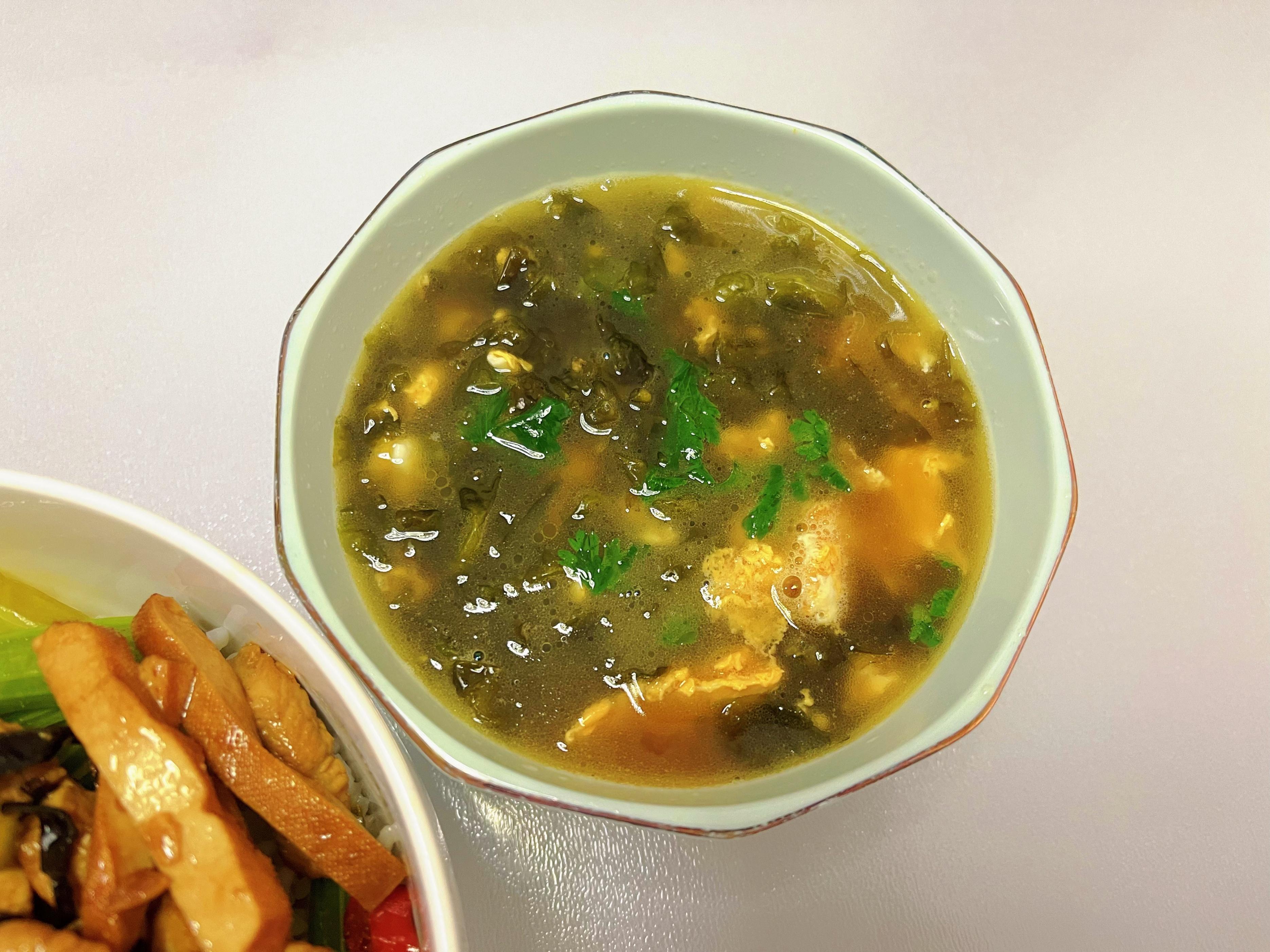 這湯的鮮美全在火候把控。紫菜煮久了會發黑,雞蛋攪早了變蛋渣。有次我用雞湯代替清水,鮮得老公連喝三碗,最後直接把米飯倒進湯裏拌着喫光了。