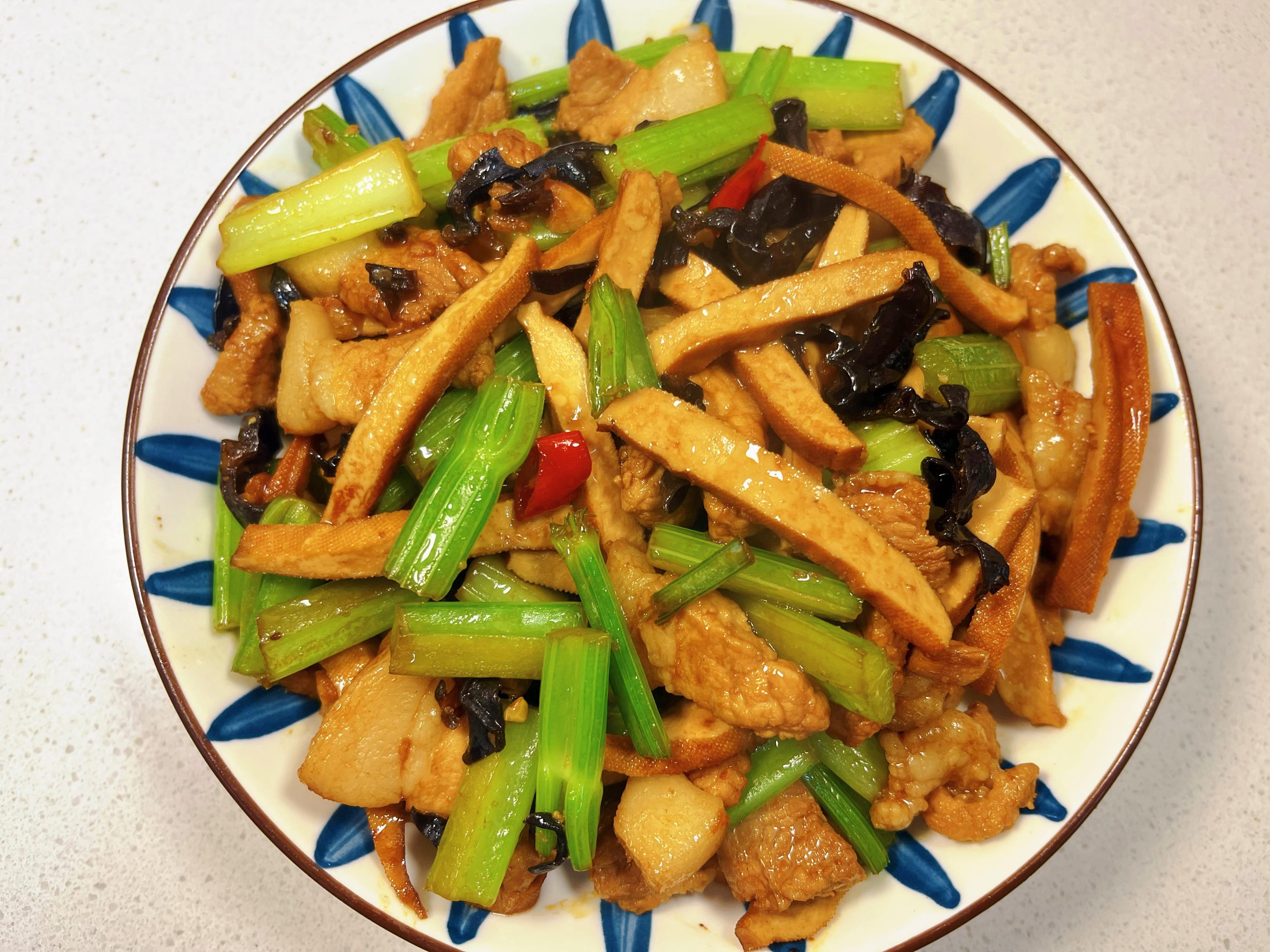 這道菜的妙處在於食材的互補。豆乾吸足了肉香和醬香,咬下去還會爆汁;芹菜脆生生的正好解膩,豬肉經過提前醃製嫩得像豆腐。上次做給挑食的小侄子喫,他愣是把芹菜當成"綠色薯條"喫了個精光。