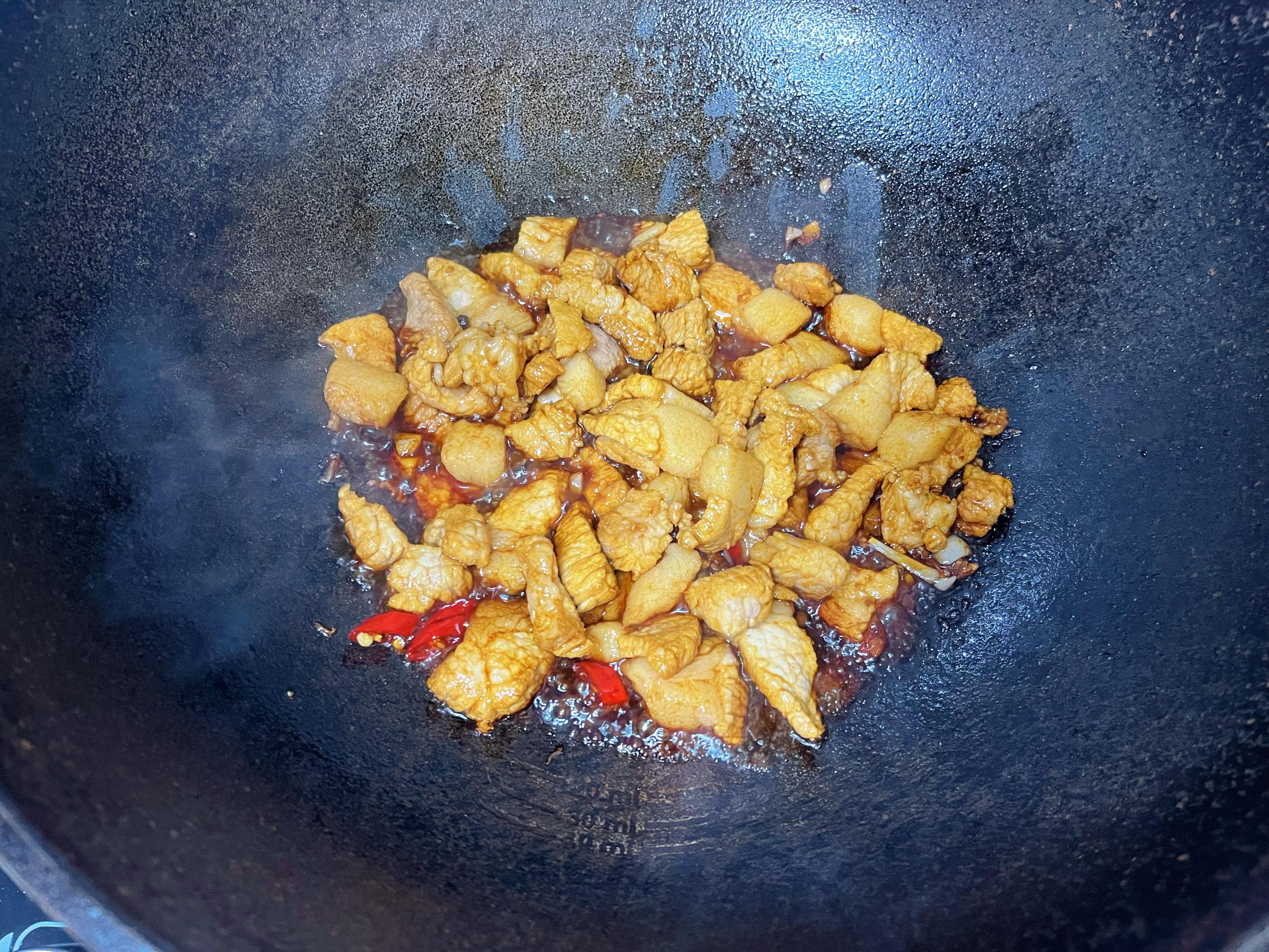 3、熱鍋涼油,先下姜蒜爆香,滑入肉片炒至變色立刻盛出