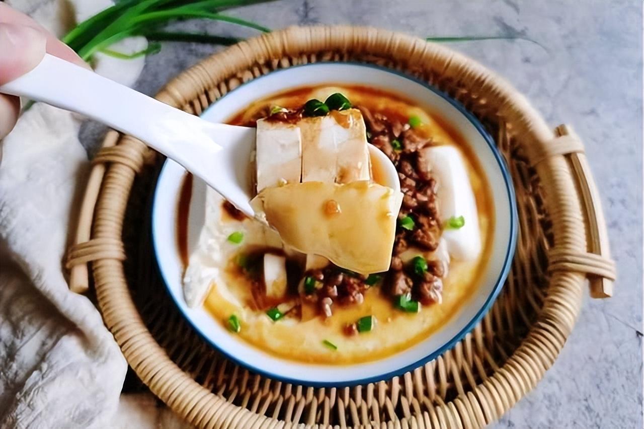 推薦食物,豆腐。它是一種植物高蛋白,口感好,營養高,人體好吸收,特別適合中老年人羣食用。建議喫法,豆腐蒸雞蛋肉末。幾種食物一起蒸着喫, 葷素搭配,營養互補,好喫美味。