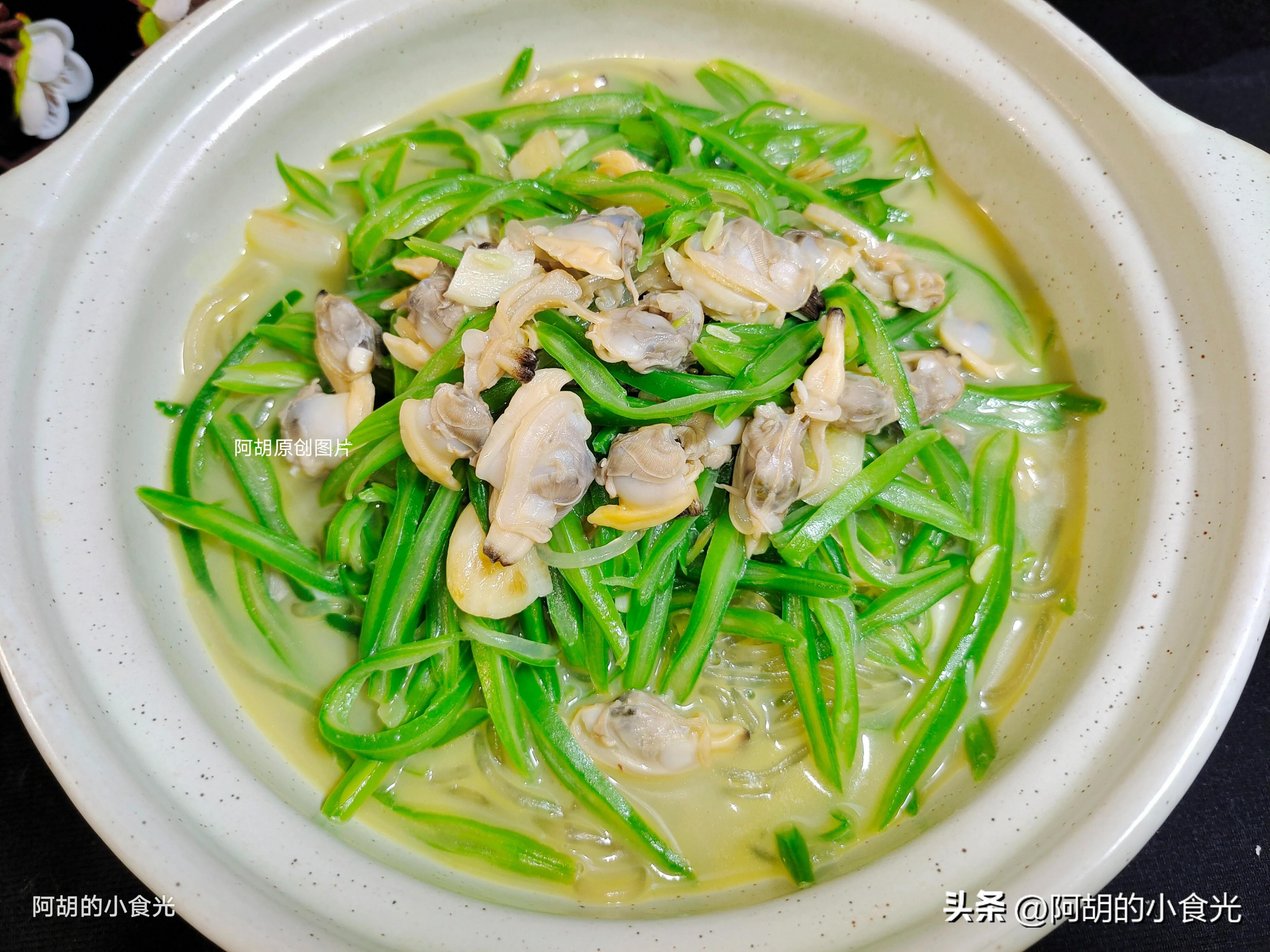 今日菜餚的食材搭配主要由扁豆角+花蛤肉+粉條組合而成,三種食材就這麼簡單地炒一炒、煮一煮,一道有湯有菜、湯鮮菜嫩、鮮嫩又開胃的下飯菜就可以上桌了,又能給夏天添一道好菜了。