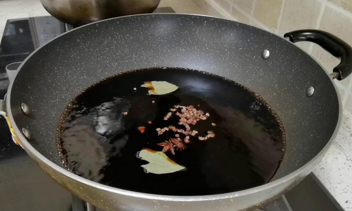 - 鍋裏倒清水、八角,大火煮開後轉小火咕嘟5分鐘,把八角的香氣全逼出來