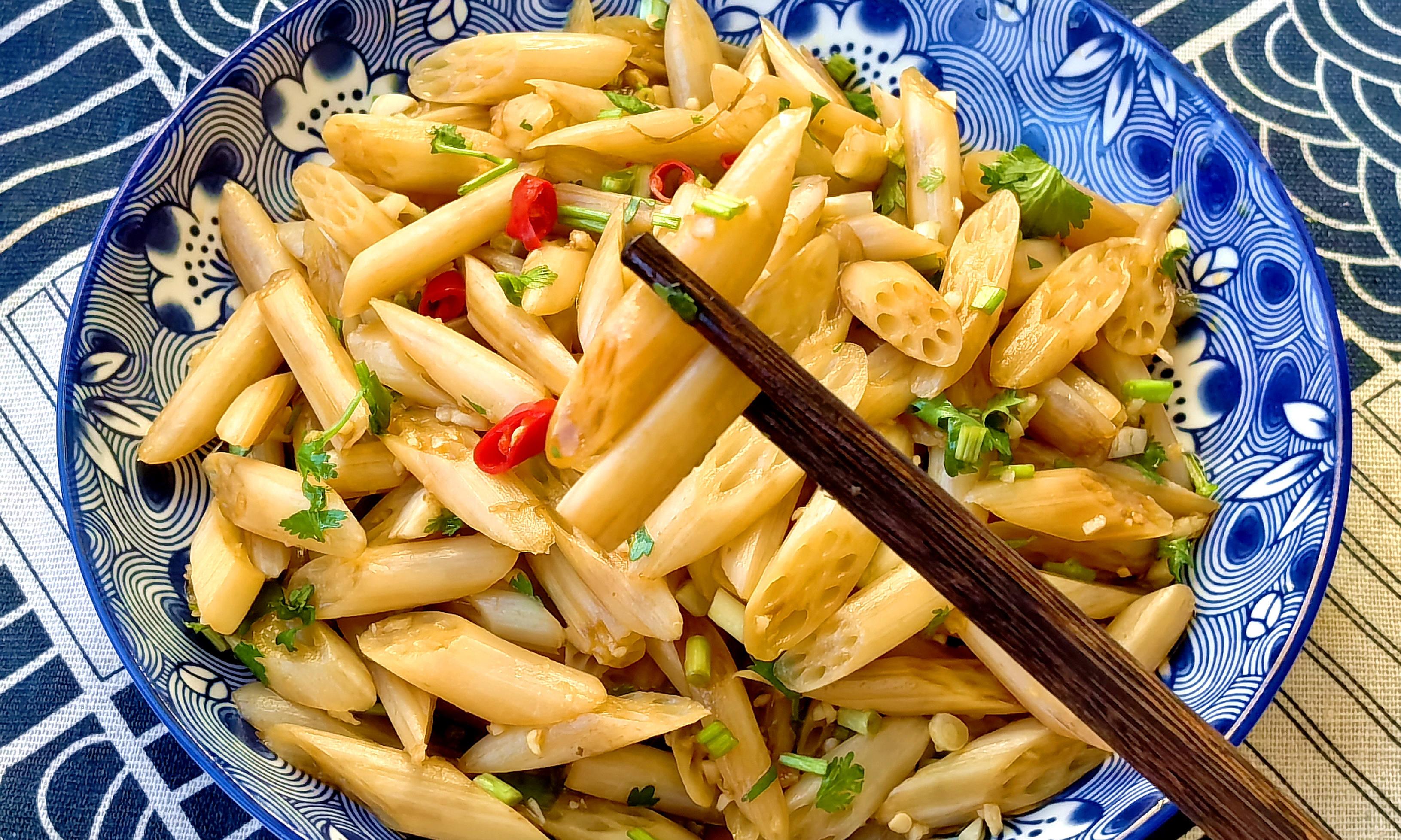 推薦理由:藕帶是荷花的幼莖,潔白如玉,《本草綱目》載其"解暑熱,利五臟",脆嫩口感寓意做人要"中通外直"。