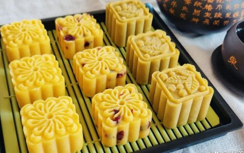 3、最後把綠豆泥分成100克的小劑子團成圓球,放到模具中,用手按壓緊實,壓出綠豆糕即成。如果你喜歡蔓越莓幹,也可以在綠豆糕里加入蔓越莓幹,製作成蔓越莓綠豆糕。