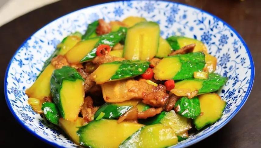 2、油熱後,我們要先將五花肉片炒香,然後加入蔥花、蒜末和小米辣翻炒出香味,淋入少許料酒去腥味,再次翻炒均勻。最後,我們要把黃瓜放入鍋中,開大火炒熟,再倒入調好的料汁,炒到湯汁變得比較黏稠,就可以出鍋了。