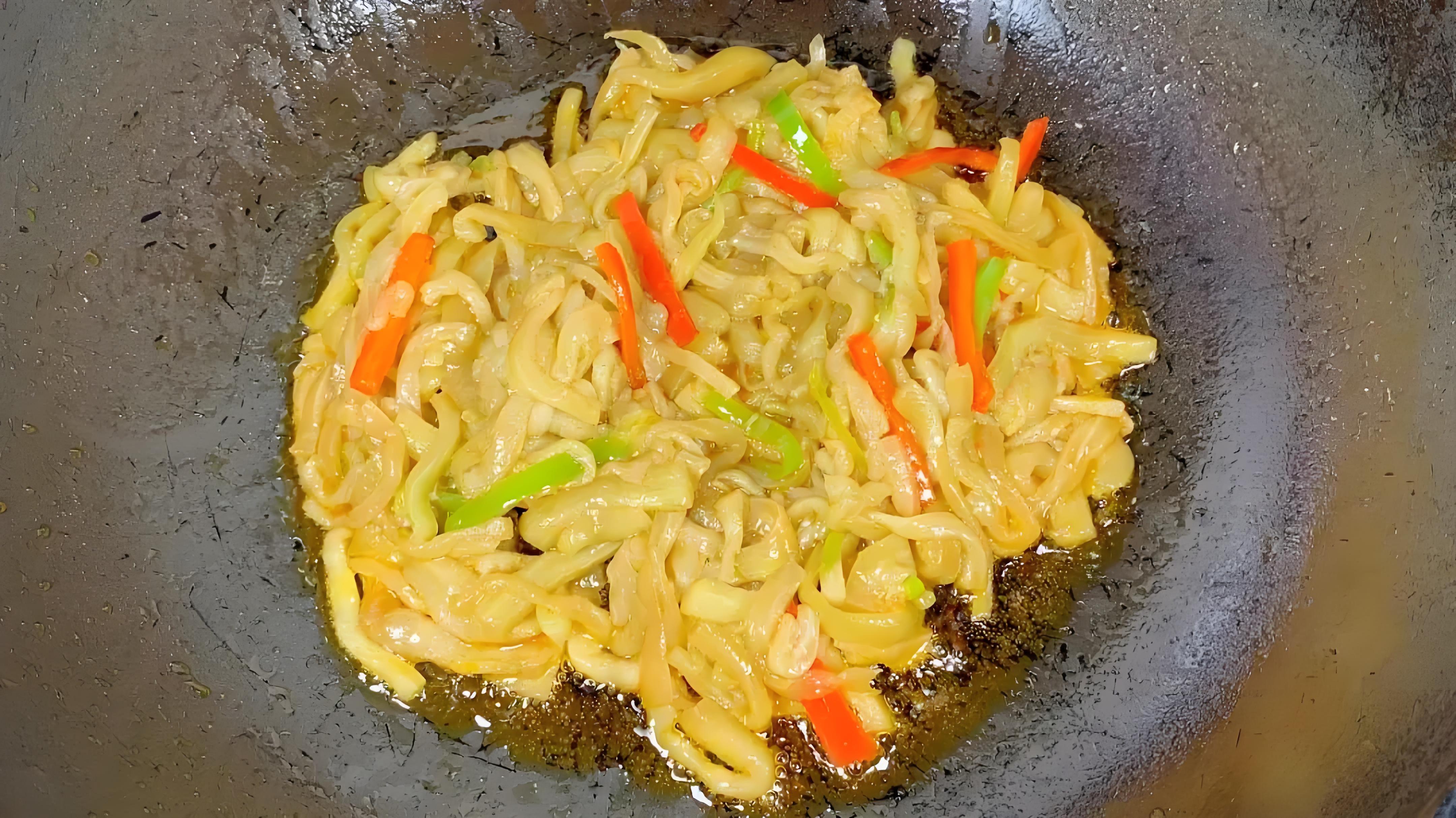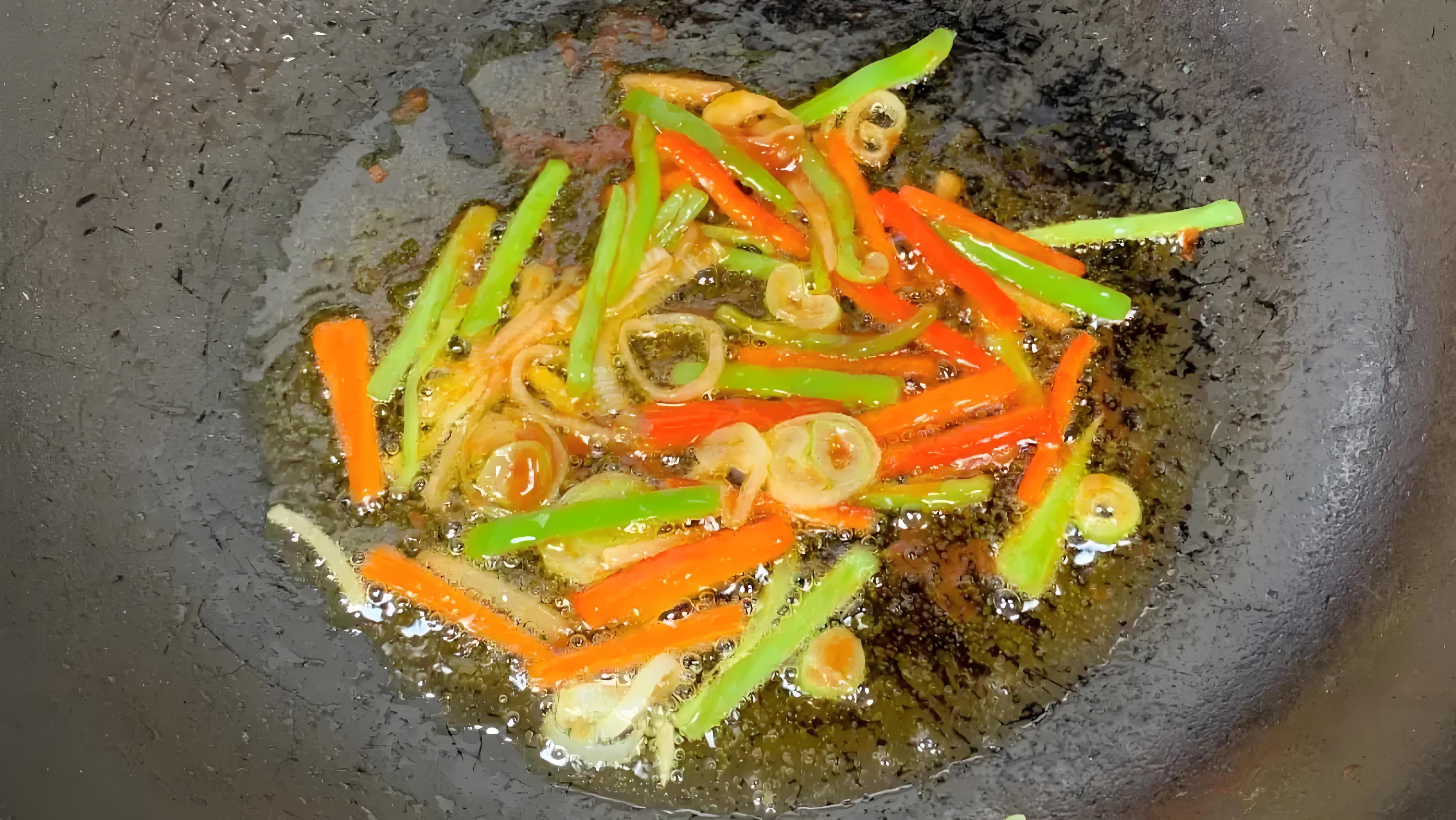 3、下鍋順序定乾坤 轉中大火,茄子條和青紅椒絲同時下鍋。別急着翻動,讓鍋氣把茄子煎20秒,再用鍋鏟輕輕推散。淋入2勺生抽沿着鍋邊滋出香氣,加蠔油、白糖提鮮。