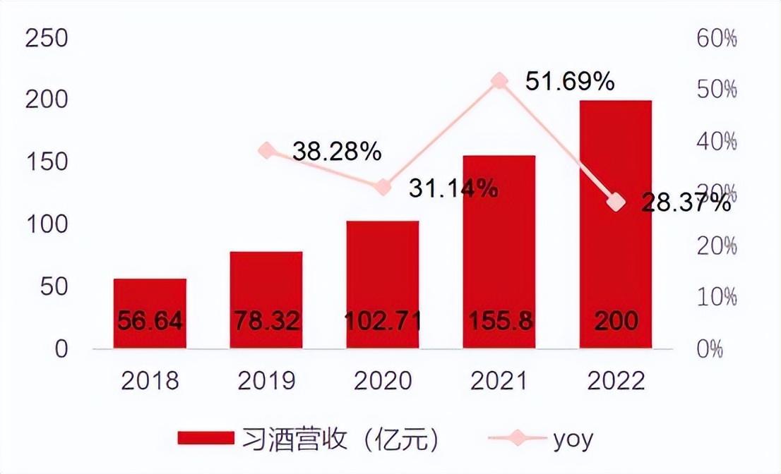 就像手機圈裏的“中端機皇”,性能直追旗艦,價格少個零頭,這招讓習酒在2017-2020年間實現窖藏系列銷售額從14億到56億的三級跳。2022年習酒脫離茅臺單幹,當年銷售額直接衝上200億,窖藏1988貢獻超80億。