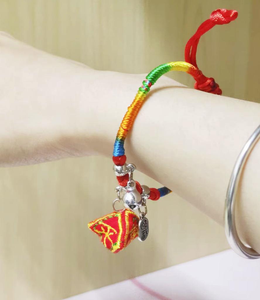 其三、戴彩繩:“綵線輕纏紅玉臂,小符斜掛綠雲中鬟”,其實戴五彩繩流傳於漢代,所謂五彩繩就是指用五種顏色的線編製成的繩子,由於色彩絢麗,拴在手腕或腳踝上,煞是好看,而且還有辟邪、驅邪的作用,寓意健康順利,這個五彩繩要在接下來的第一場雨時,放到水裏沖走,意思是不好的事情都被沖走了,也是一種吉祥的祝願。