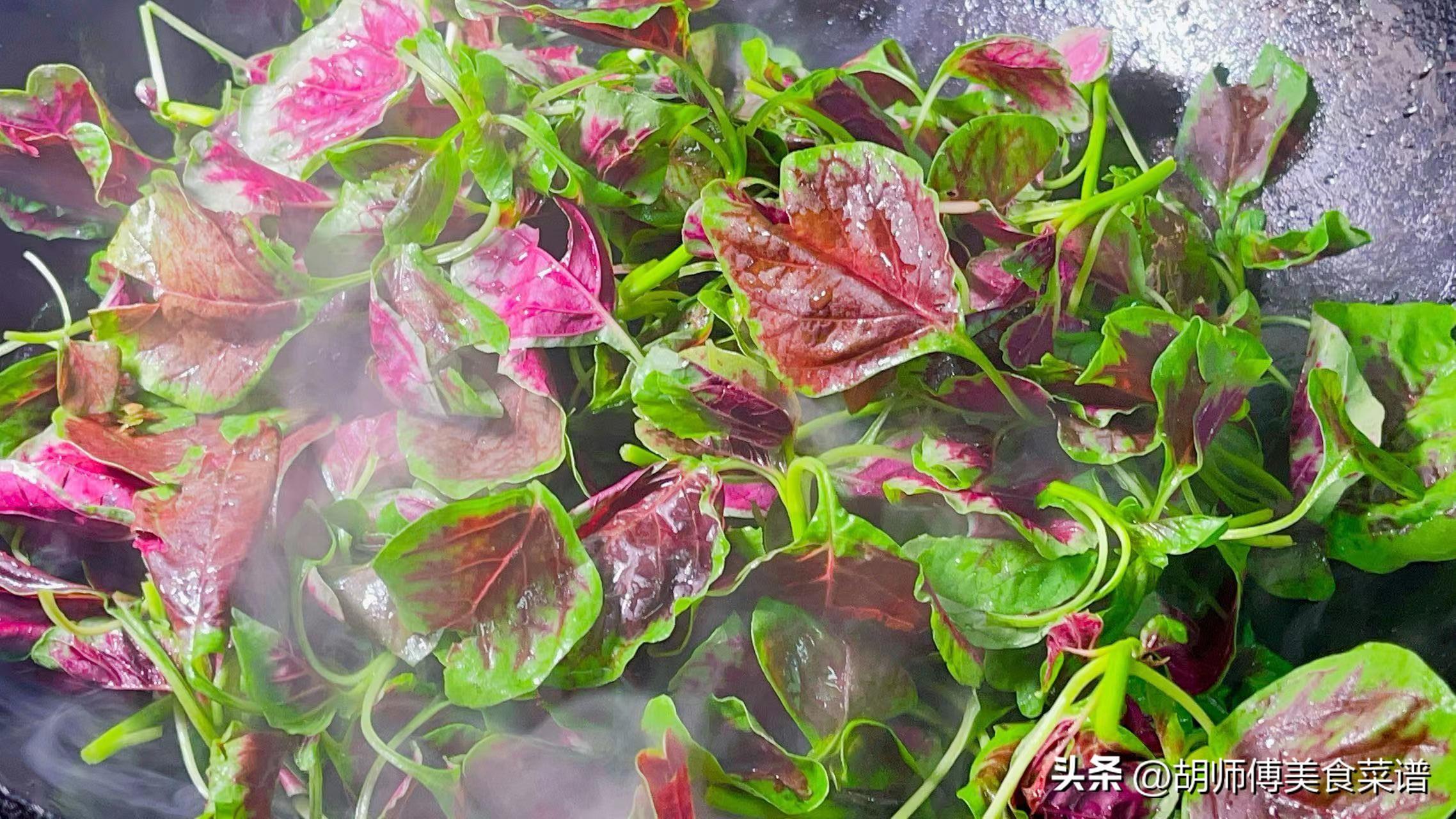 【食材準備】:紅莧菜500克、蒜片10克、豬油、食鹽、雞精適量。