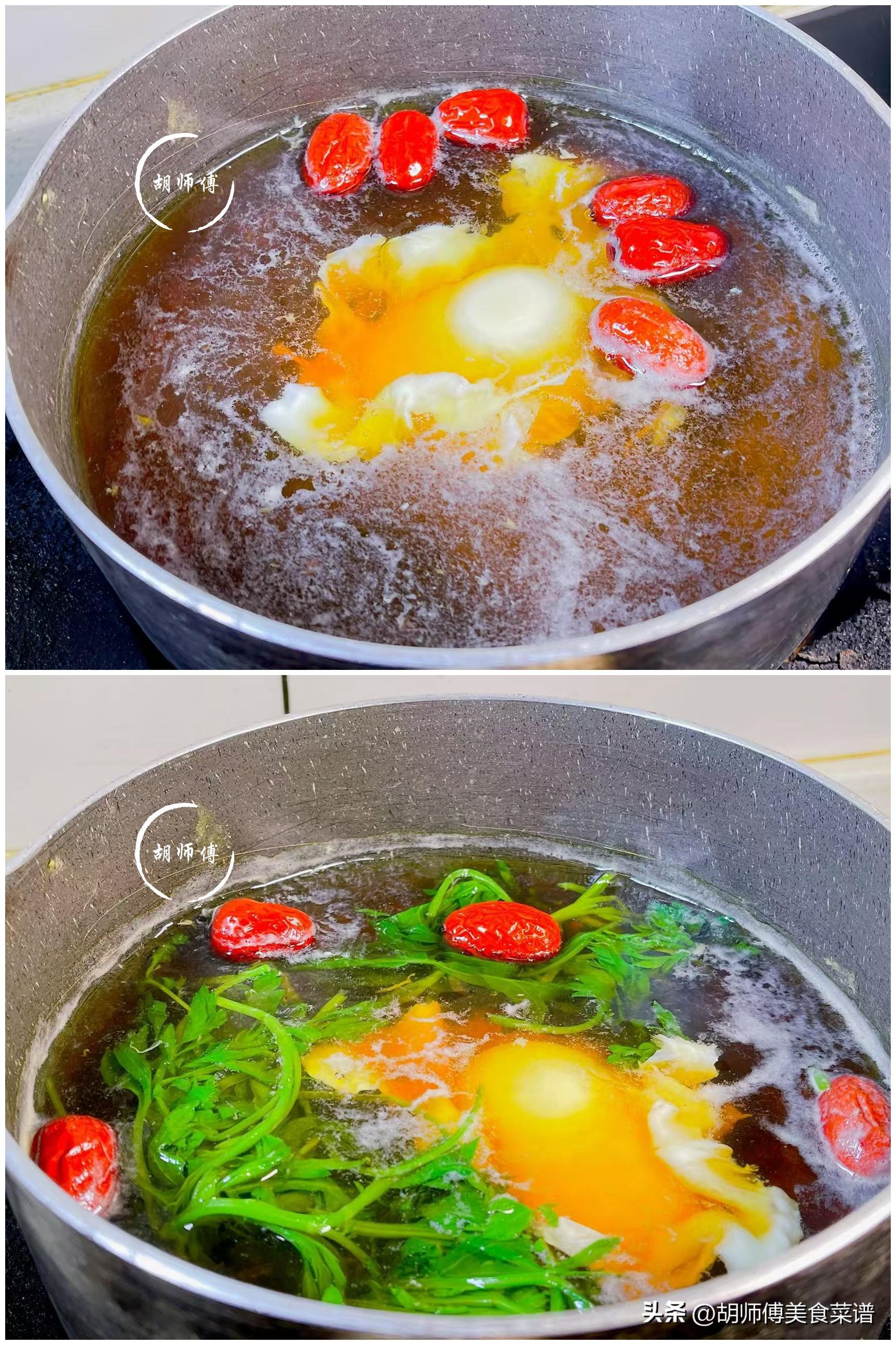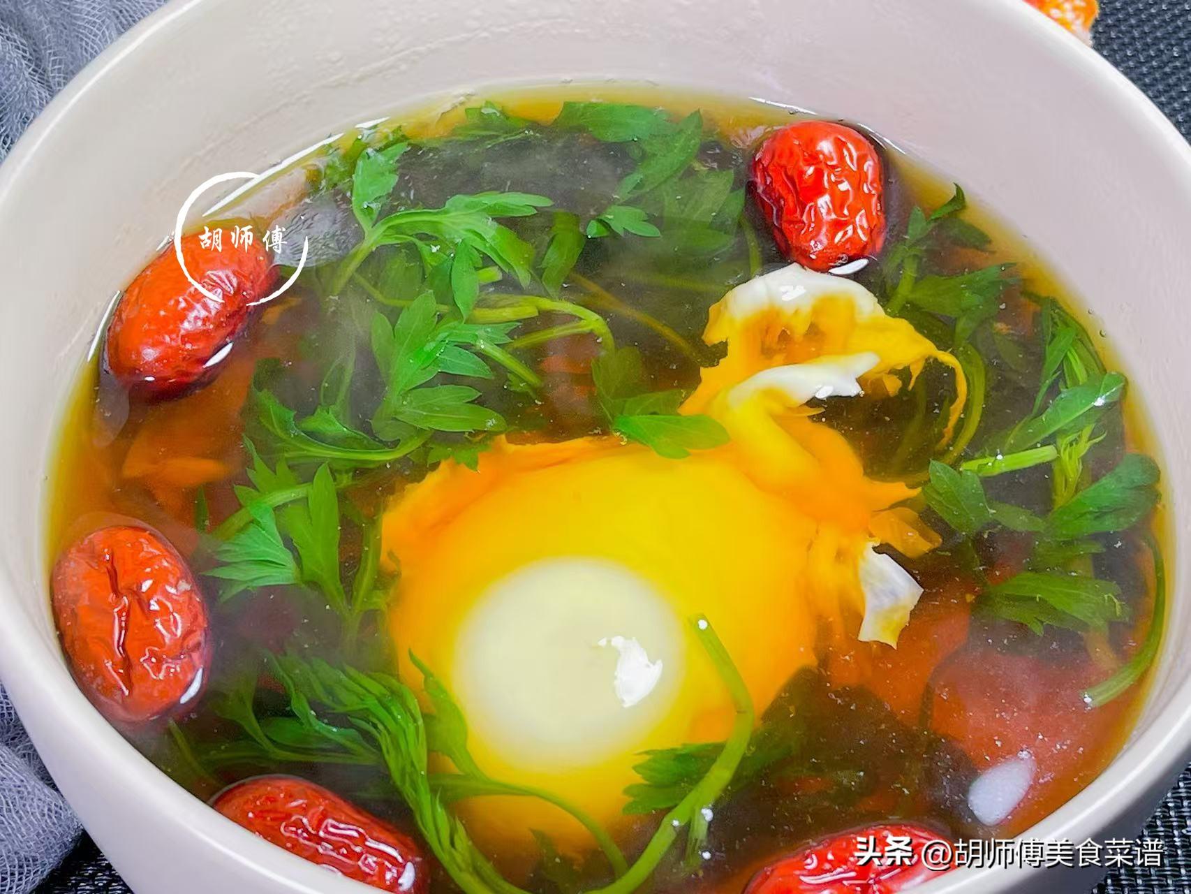 【製作方法】:把艾葉和紅棗都沖洗乾淨,然後鍋中放入適量冷水,等水燒到溫熱後,把雞蛋放入鍋中煮2分鐘後,接着再把艾葉、紅棗、紅糖全部放入鍋中,繼續煮5分鐘即可食用。煮好的艾葉湯也是可以喝的。
