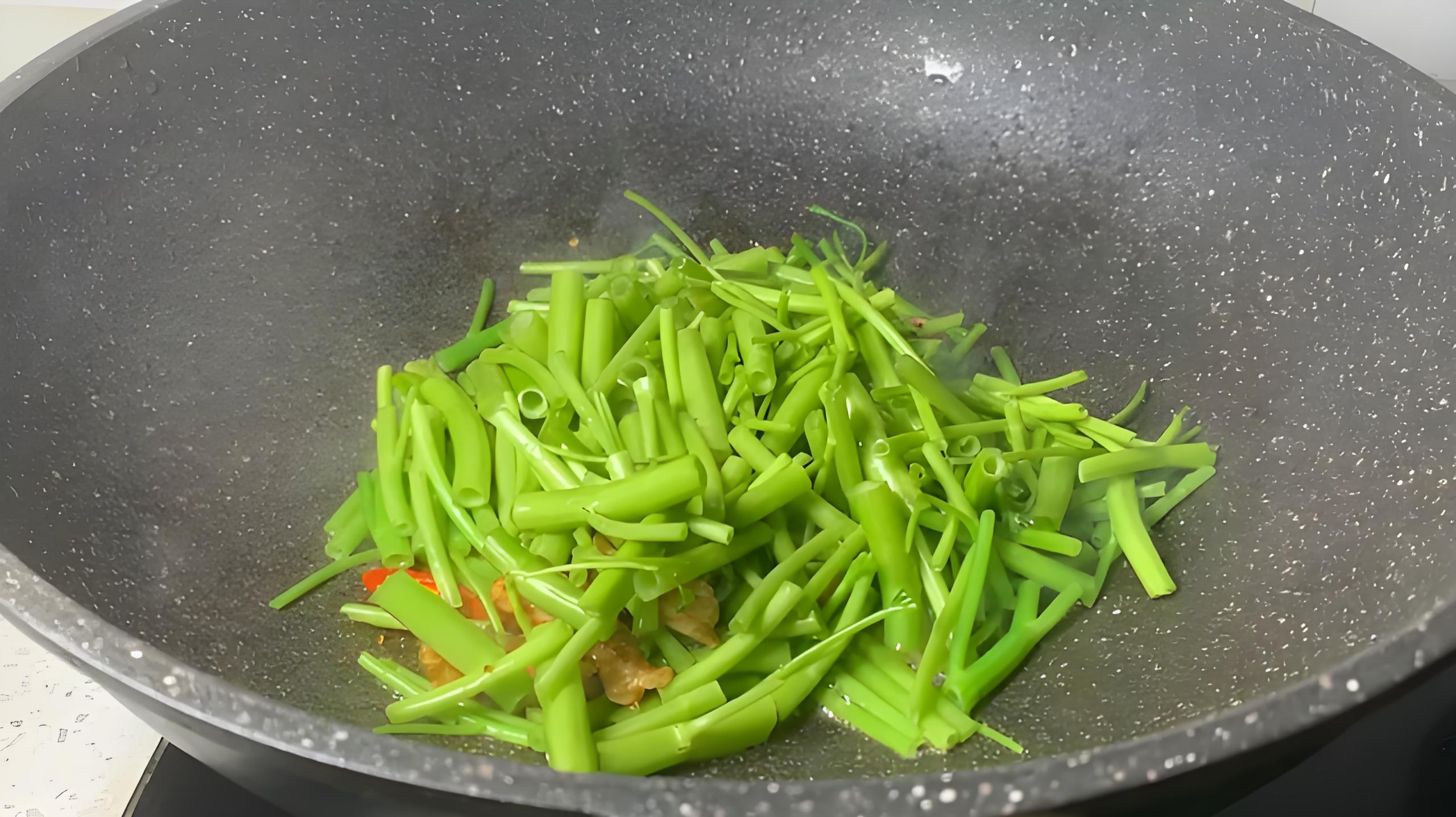 空心菜這“身材”,梗硬葉軟,熟起來有快慢。一股腦倒進去?梗還沒斷生,葉子早蔫了!記得把嫩葉和菜梗輕輕掰開,或者用刀在梗上劃個小口子,讓它和葉子熟得“步調一致”。