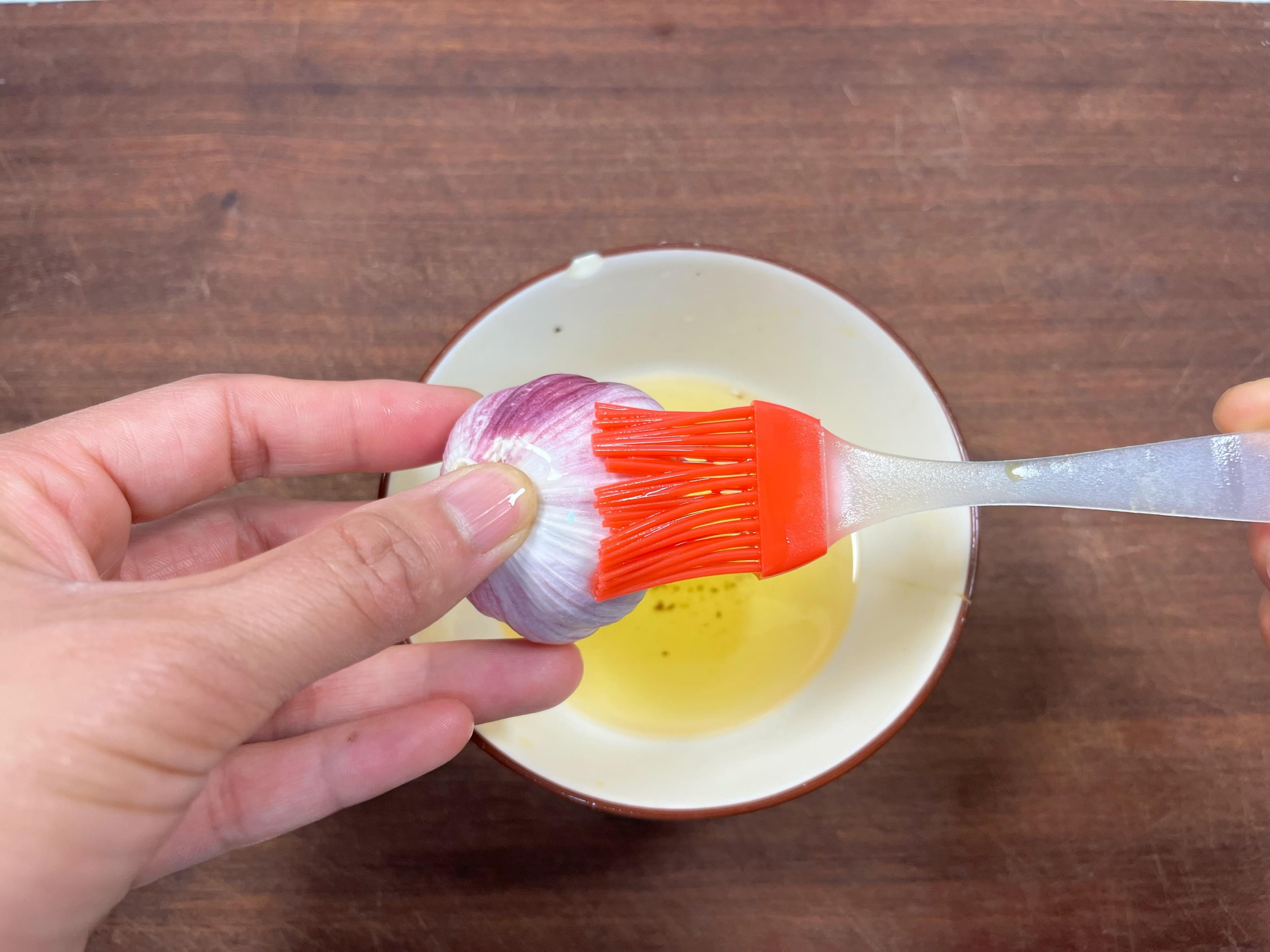 3、把蒜頭表面刷一層食用油,這樣存放在保鮮袋,透風或者冷藏都可以。
