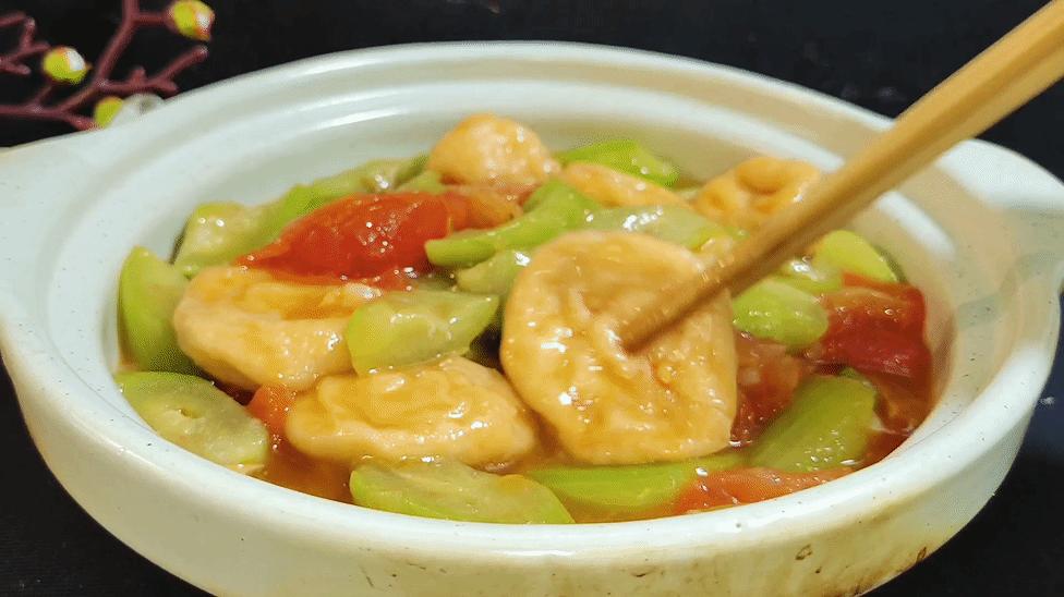 絲瓜和西紅柿也是絕配,如果再加上一個“魚腐”則更是完美至極,簡單地燒一燒再燒一燒,調味簡單,可以喫出食材的本味,有了魚腐的加入則更添了許多鮮美味道和好營養,雖然此菜看起來比較“素”,卻比喫肉強,更是下飯好菜。