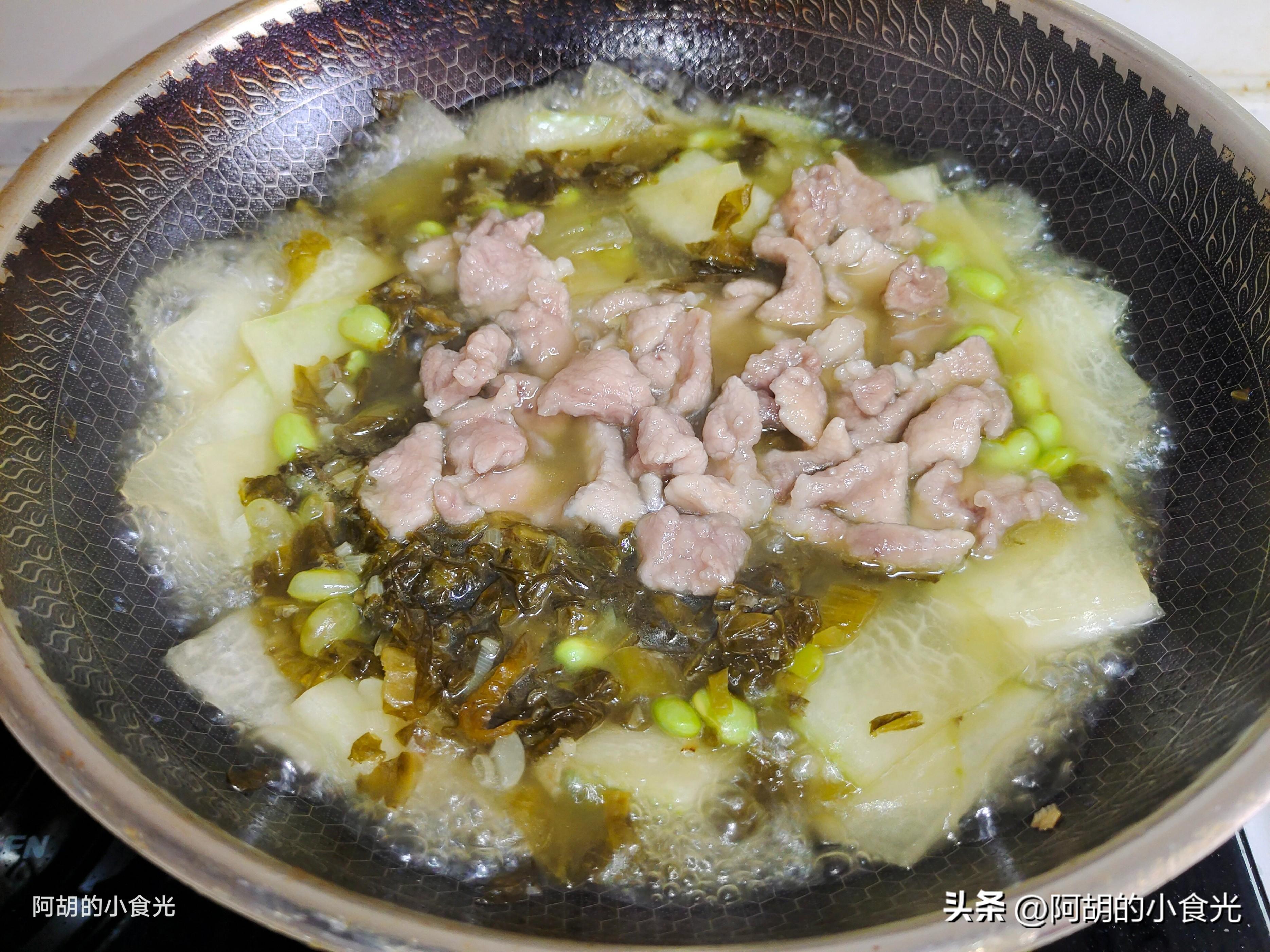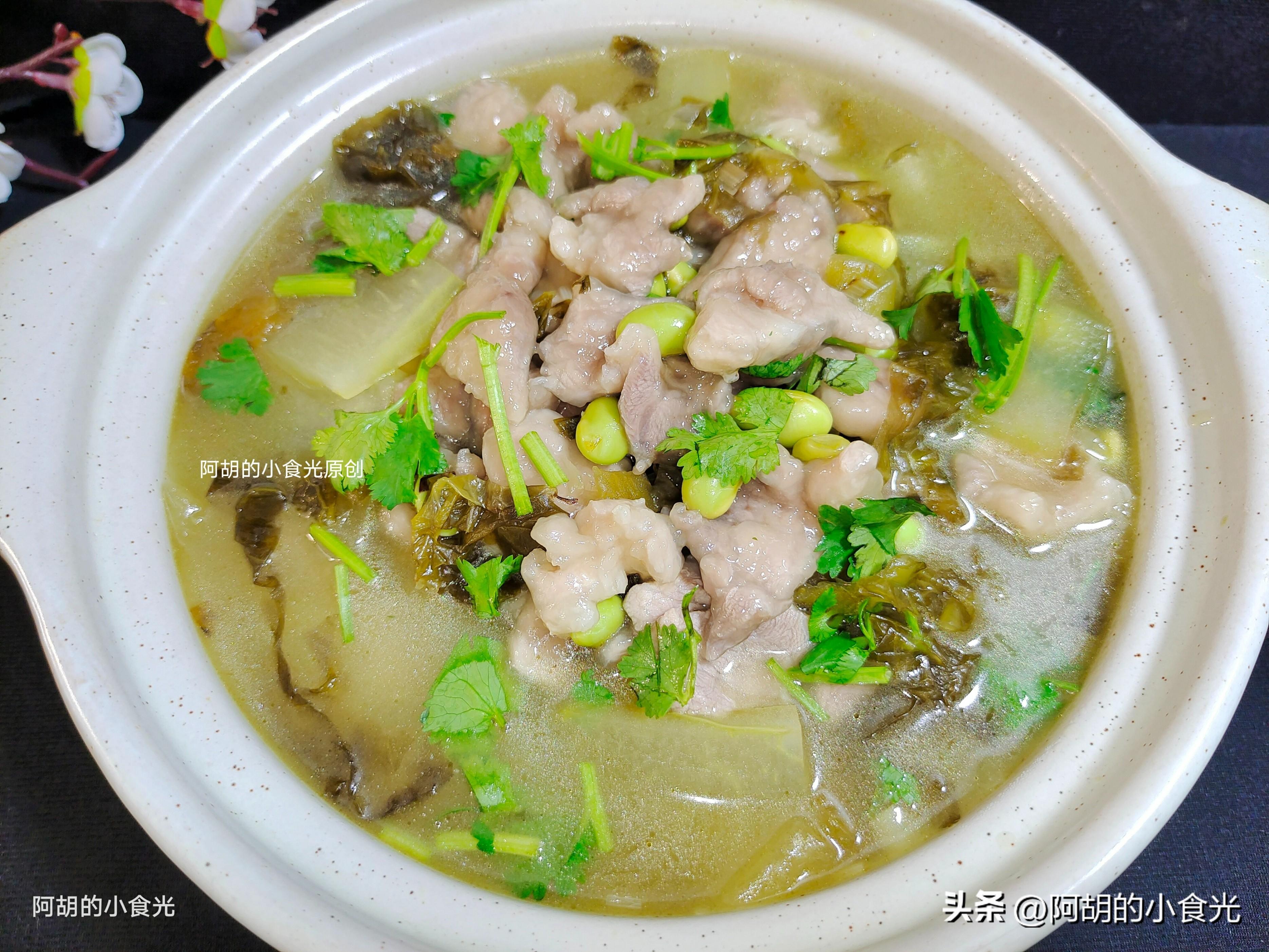 今天再來一道特別簡單的湯菜做法,食材也很簡單,主要有冬瓜+毛豆+酸菜+肉片組合而成,成菜酸香開胃,肉片滑嫩爽口,好喫到無法拒絕,再爲夏天添道好菜。