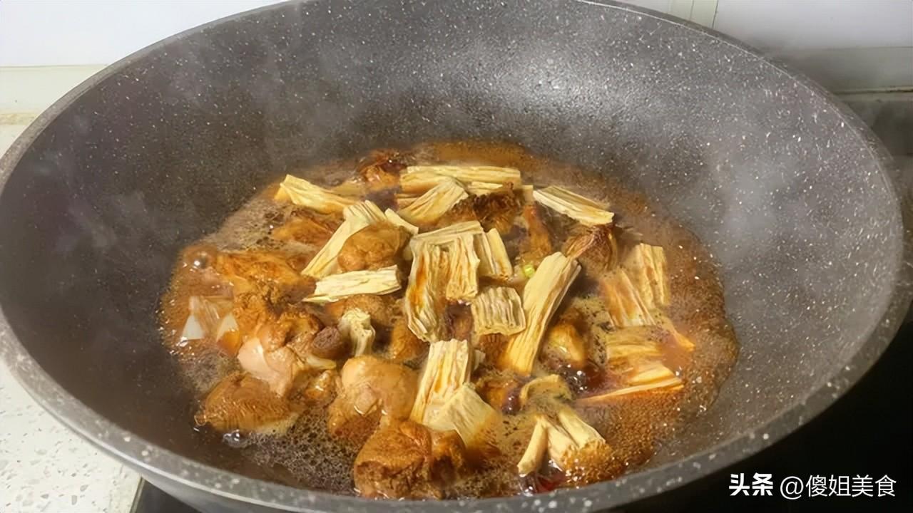 燜鴨肉,靈魂伴侶非腐竹莫屬。抓一大把幹腐竹,掰成小段,用溫水泡發。看着它從乾癟堅硬逐漸變得柔軟豐腴,吸飽了水分,彷彿重獲新生。泡發後的腐竹,就像一塊塊柔軟的海綿,只待着等會兒貪婪地吸收那濃郁鮮美的鴨肉湯汁。