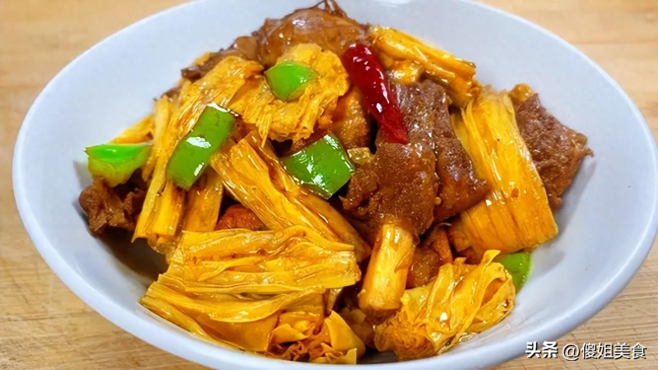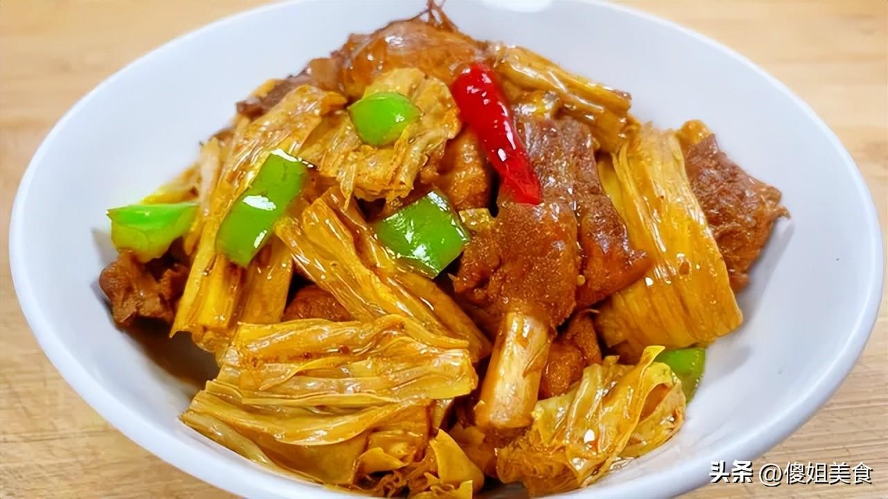 再次蓋上蓋子,小火燜煮十分鐘左右。時間一到,開蓋!腐竹早已吸飽了鴨湯的精華,變得胖嘟嘟、滑溜溜,呈現出誘人的醬色。青椒也褪去了生澀,變得油潤翠綠。嚐嚐鹹淡,根據需要補少許鹽或一點點糖提鮮。