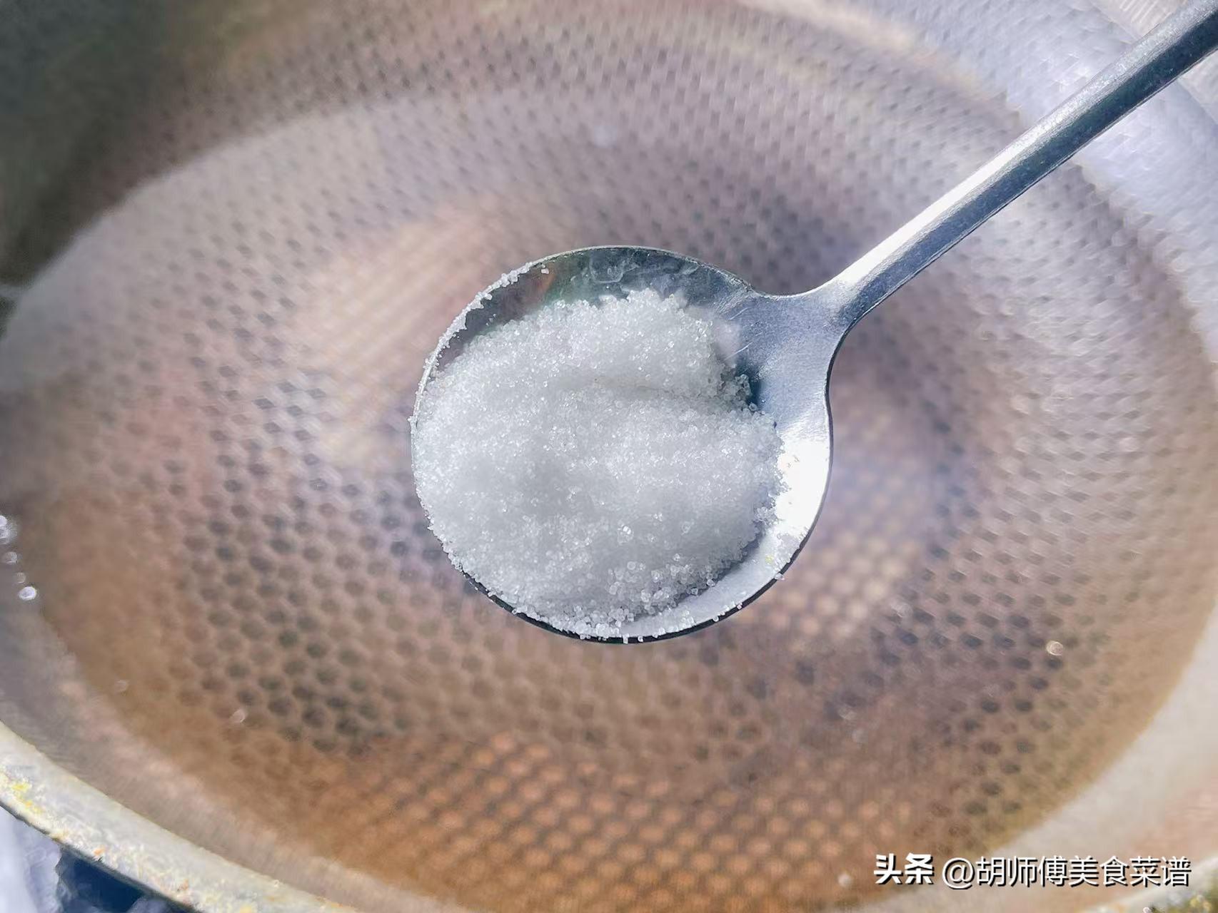 第一步:首先將一盆水放入鍋中,然後開大火,將水煮沸後把食鹽放入水中攪拌均勻關火,接着等鍋中的水完全冷卻即可備用。