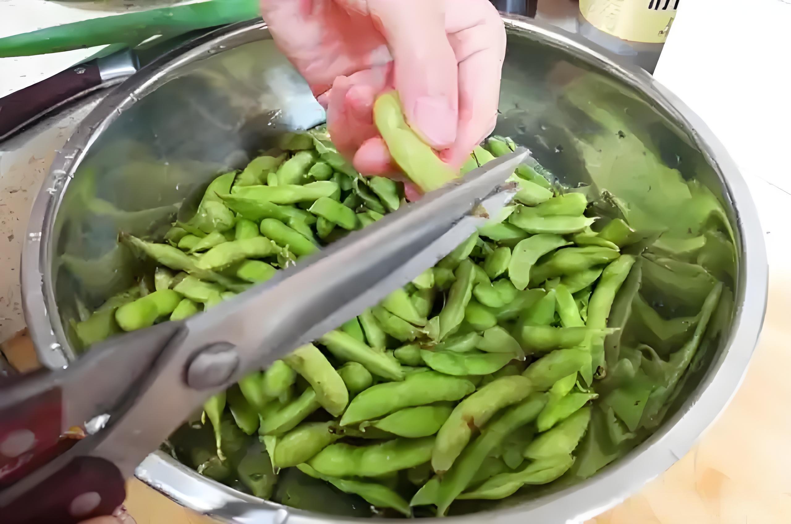 毛豆兩端尖角緊閉,猶如一道天然屏障,任憑湯汁在外翻滾沸騰,鹹鮮滋味也難以穿透莢殼,抵達內部的豆粒。正確做法:下鍋前,給毛豆“開窗”! 用廚房剪刀或乾脆利落的指甲,輕輕剪掉毛豆莢的兩端尖角。無需剪掉太多,只需開個小口,讓湯汁得以順暢流入莢內空間。這小小的動作,是毛豆能否真正入味的關鍵一步,不可省略!