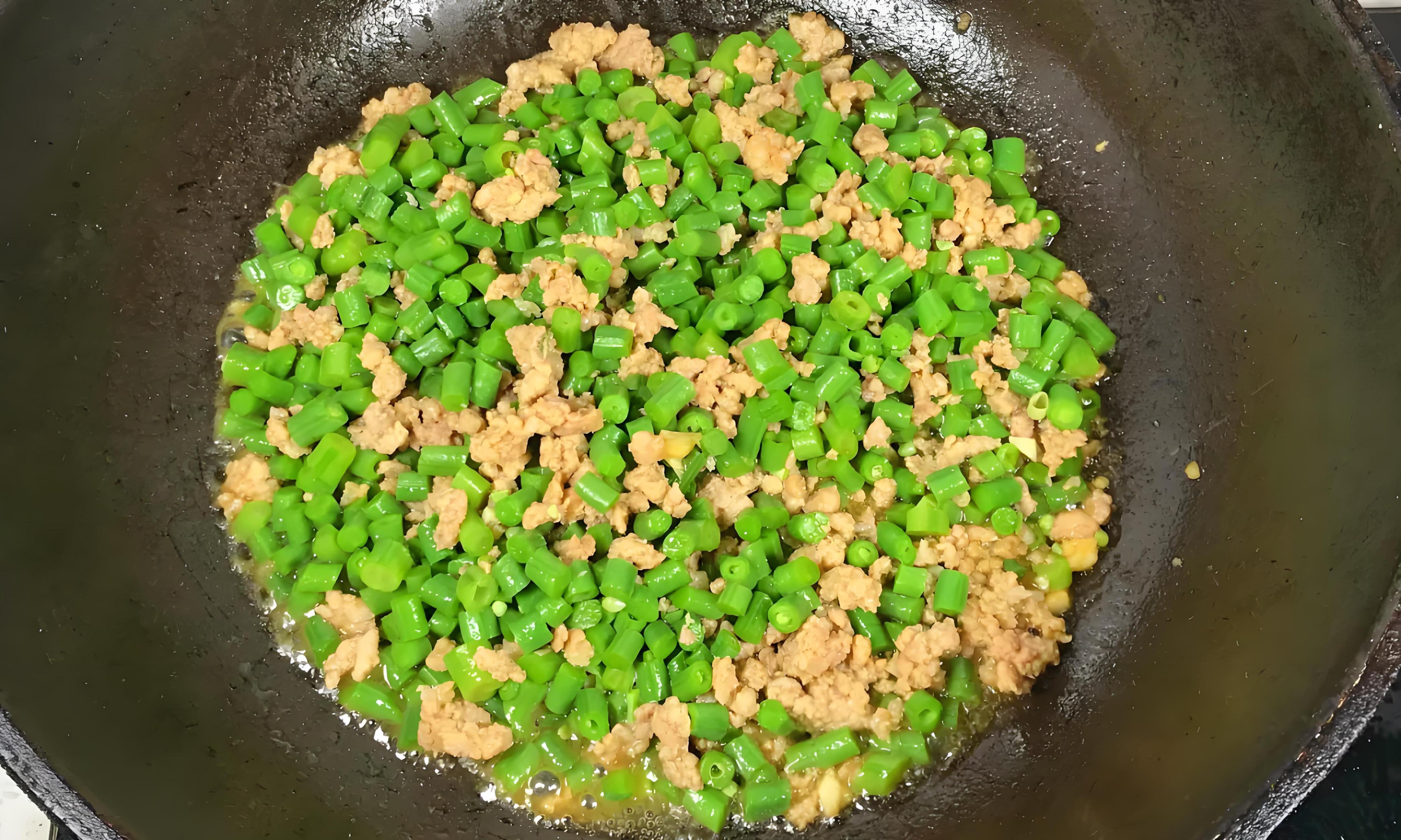 3、保持中大火,持續快速翻炒約1分鐘,讓所有味道完美融合。看到醬汁變得濃稠明亮,均勻地包裹在豆角和肉末上,即可關火!