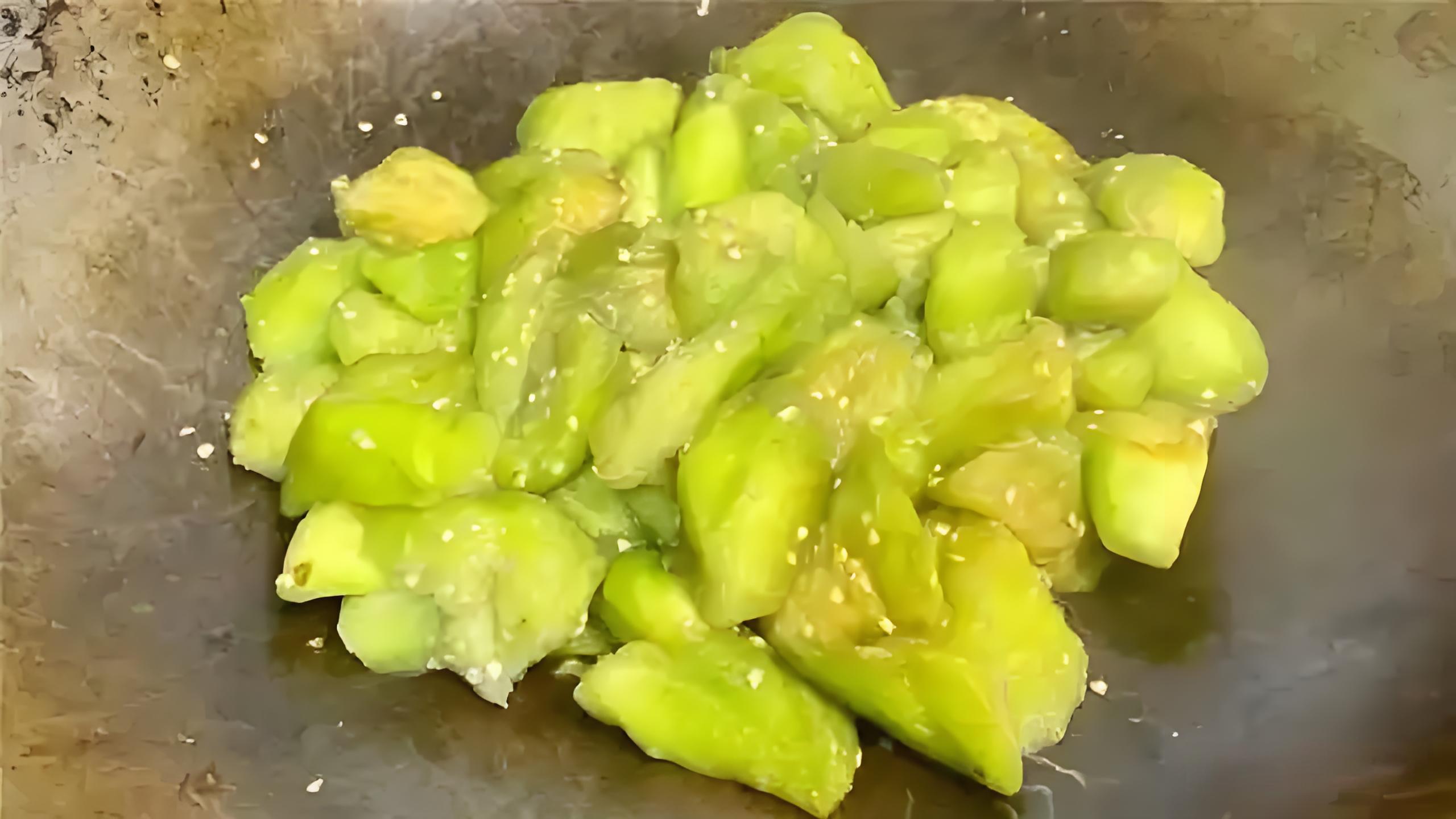 - 先炒茄子: 攥乾的茄子塊倒入鍋中,中火快速翻炒。神奇時刻來了:茄子不再瘋狂吸油!翻炒約1-2分鐘,茄子邊緣開始變得透亮。