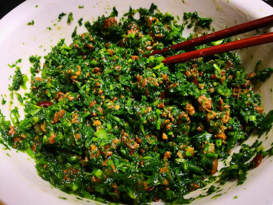 胡蘿蔔纓的做法也很多,可以醃鹹菜喫,可以蒸着喫,可以炒着喫,用它做餡包餃子更是鮮得不得了!
