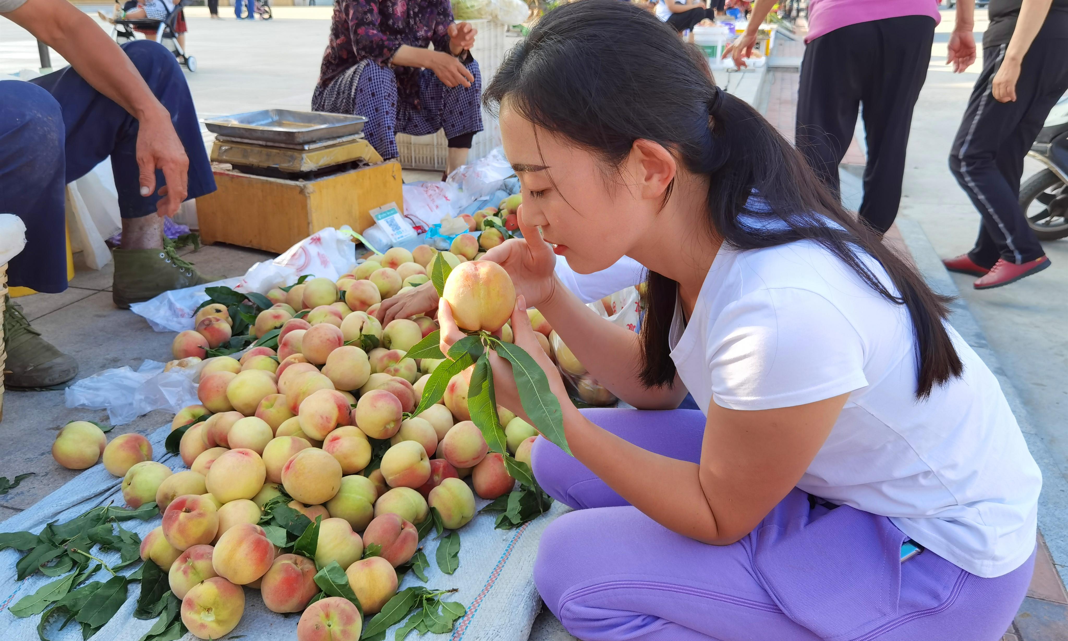 3、聞香識好桃: 把鼻子湊近桃蒂那裏,深深吸一口氣。真正的好桃,那股子清甜桃香是藏不住的,淡淡的,很舒服。要是聞着青草味兒,或者一股子說不清道不明的怪味兒,再好看也別往家拎。