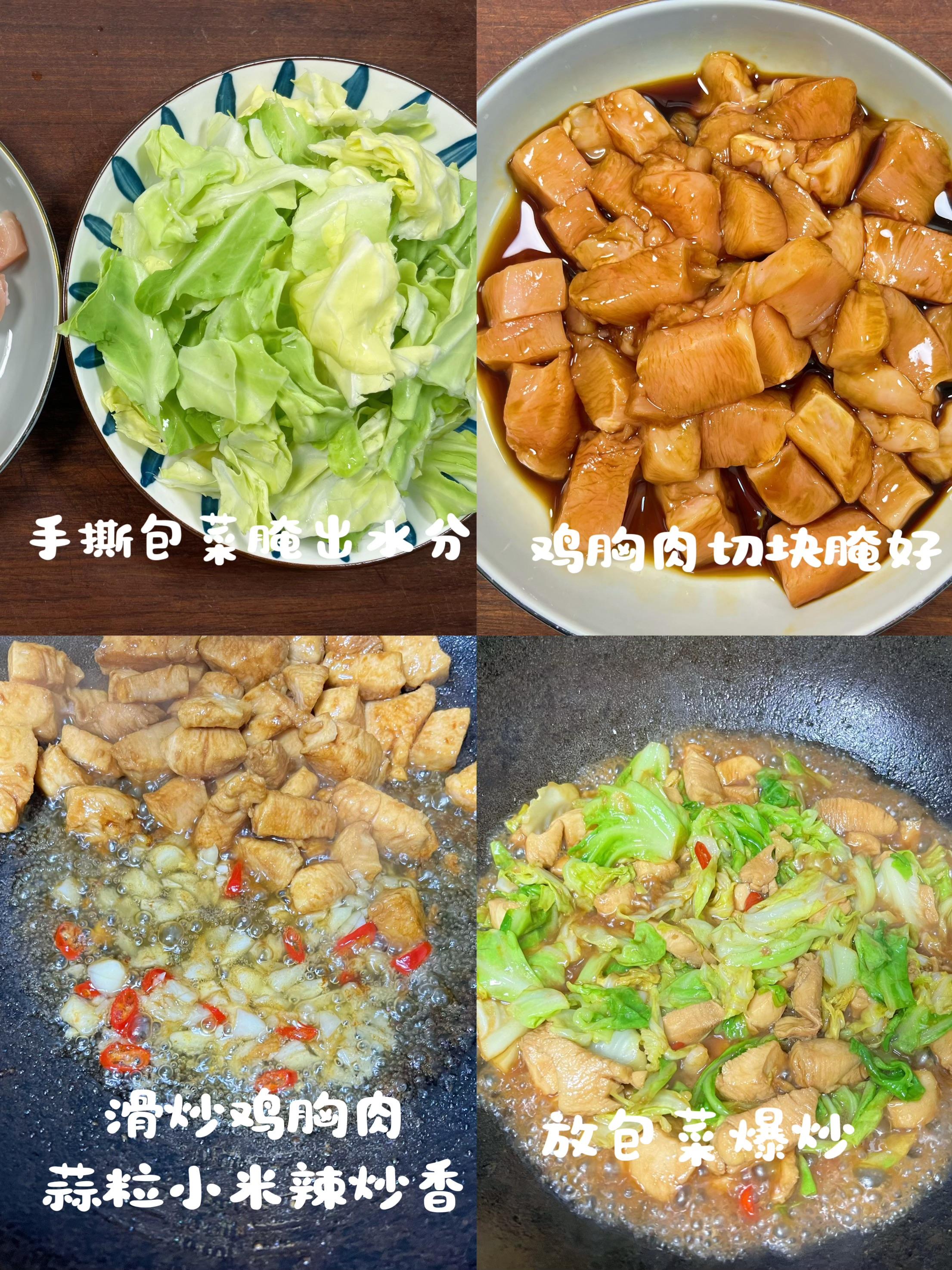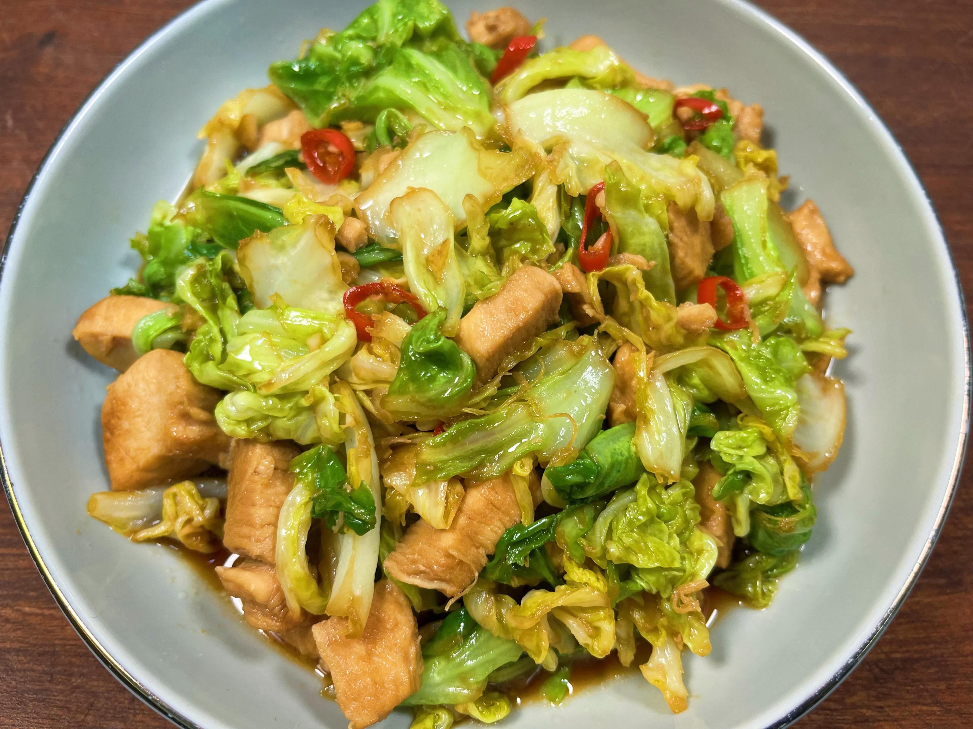 點評一下: 雞胸肉是出了名的低脂高蛋白,給咱身體提供堅實的“建築材料”。包菜這不起眼的蔬菜,維生素C含量可不低,對抗氧化、提升免疫力功不可沒!