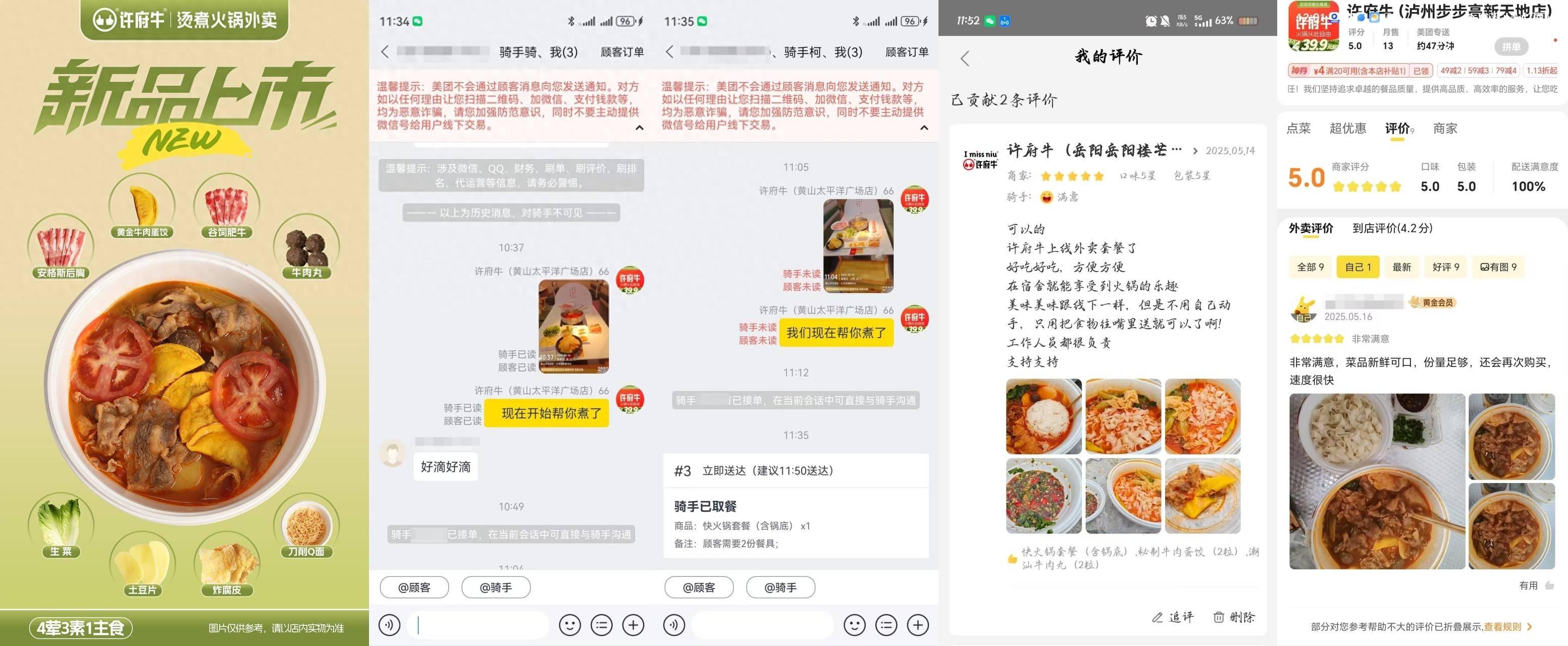 在這場“良心拷問”的輿論風暴中,深耕牛肉火鍋賽道20年的許府牛選擇最直接的方式回應:在5月13日上線的外賣服務中,用店員現煮現涮實時發送圖片給消費者的方式,將備餐過程一覽無餘。這種經得起“放大鏡”審視的底氣,源於其嚴格的標準化品控體系,以及對自身產品的自信。