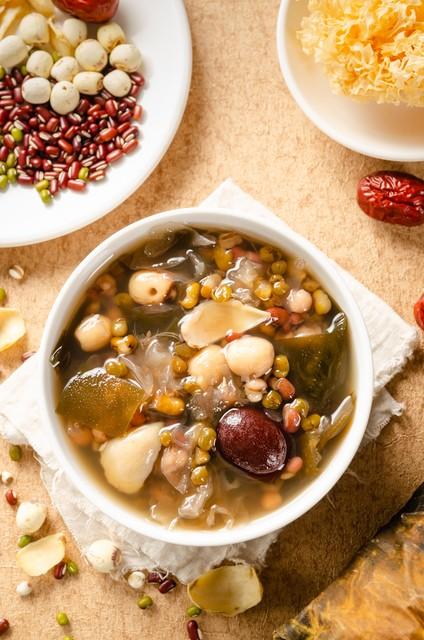 黑豆的醇厚,綠豆的清新,黃豆的香濃,百合的清甜以及蓮子的軟糯,這些相互交織,每一口都層次分明、回味無窮。做法簡單:適量的黑豆、綠豆、黃豆洗淨後,用清水浸泡4 - 6小時,這樣可以讓豆子充分吸收水分,縮短煮制時間,同時也更容易煮爛。蓮子和你百合一般浸泡半小時左右即可。所有食材倒入鍋中,加入適量的清水,大火煮開後,轉小火慢燉1 - 2小時,直到豆子和蓮子、百合都變得軟爛。爲了增加口感,還可以根據個人口味加入適量的冰糖或蜂蜜。