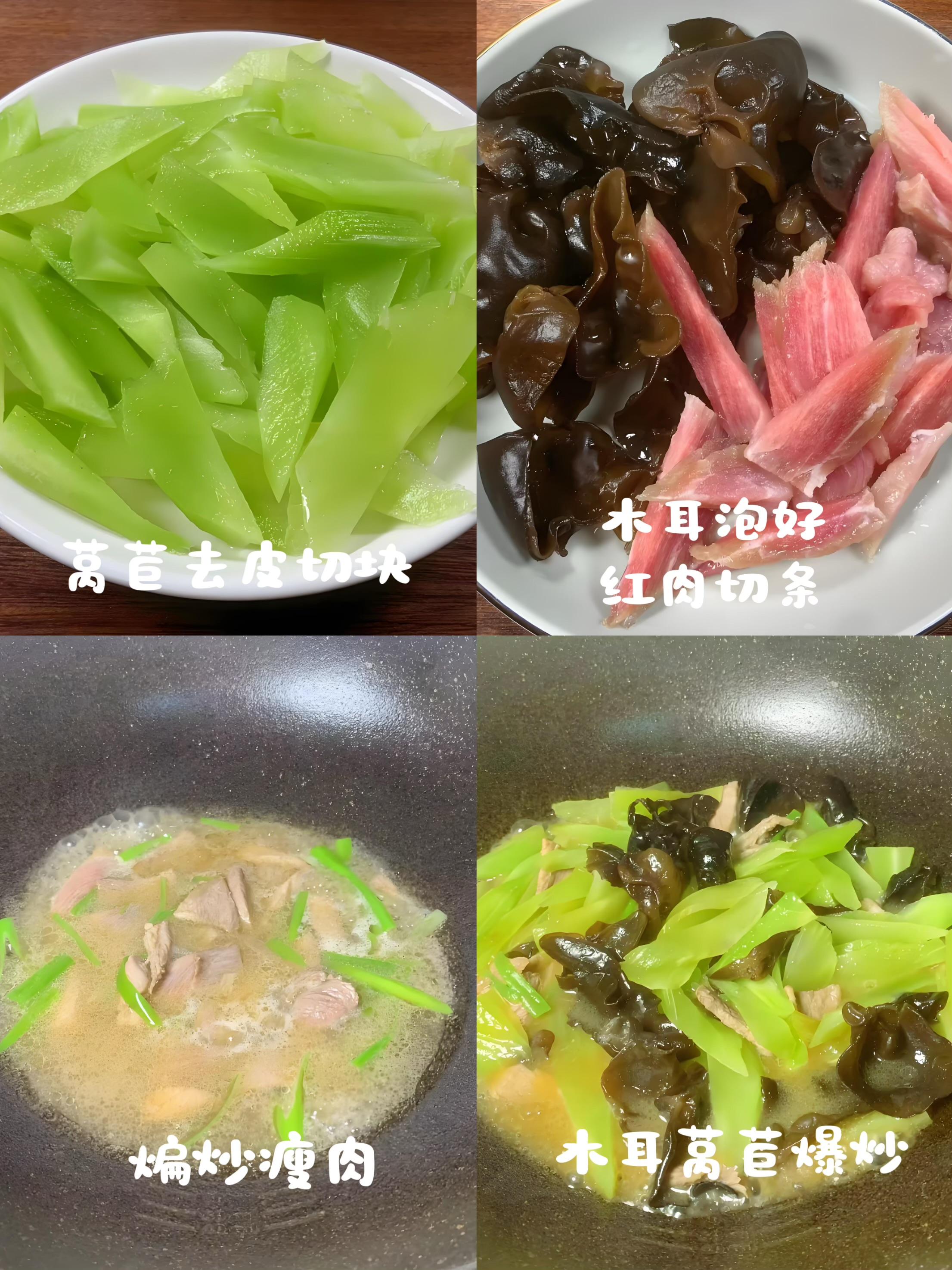 萵筍水分充盈,搭配木耳的膳食纖維,飽腹感極強。瘦肉補充血紅素鐵,吸收率更高。整道菜口感層次豐富——萵筍脆、木耳韌、肉片嫩,低脂低卡零負擔。特別適合晚餐,喫飽喫好,氣血悄悄補,體重穩穩控。