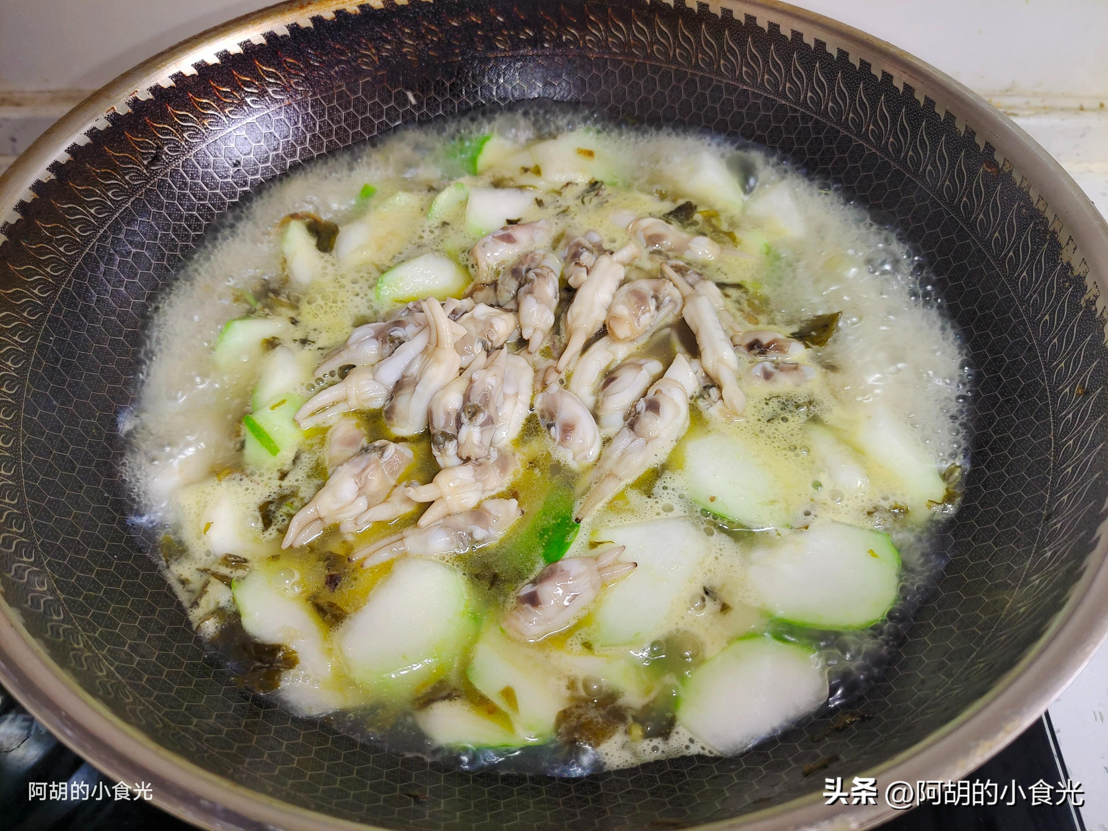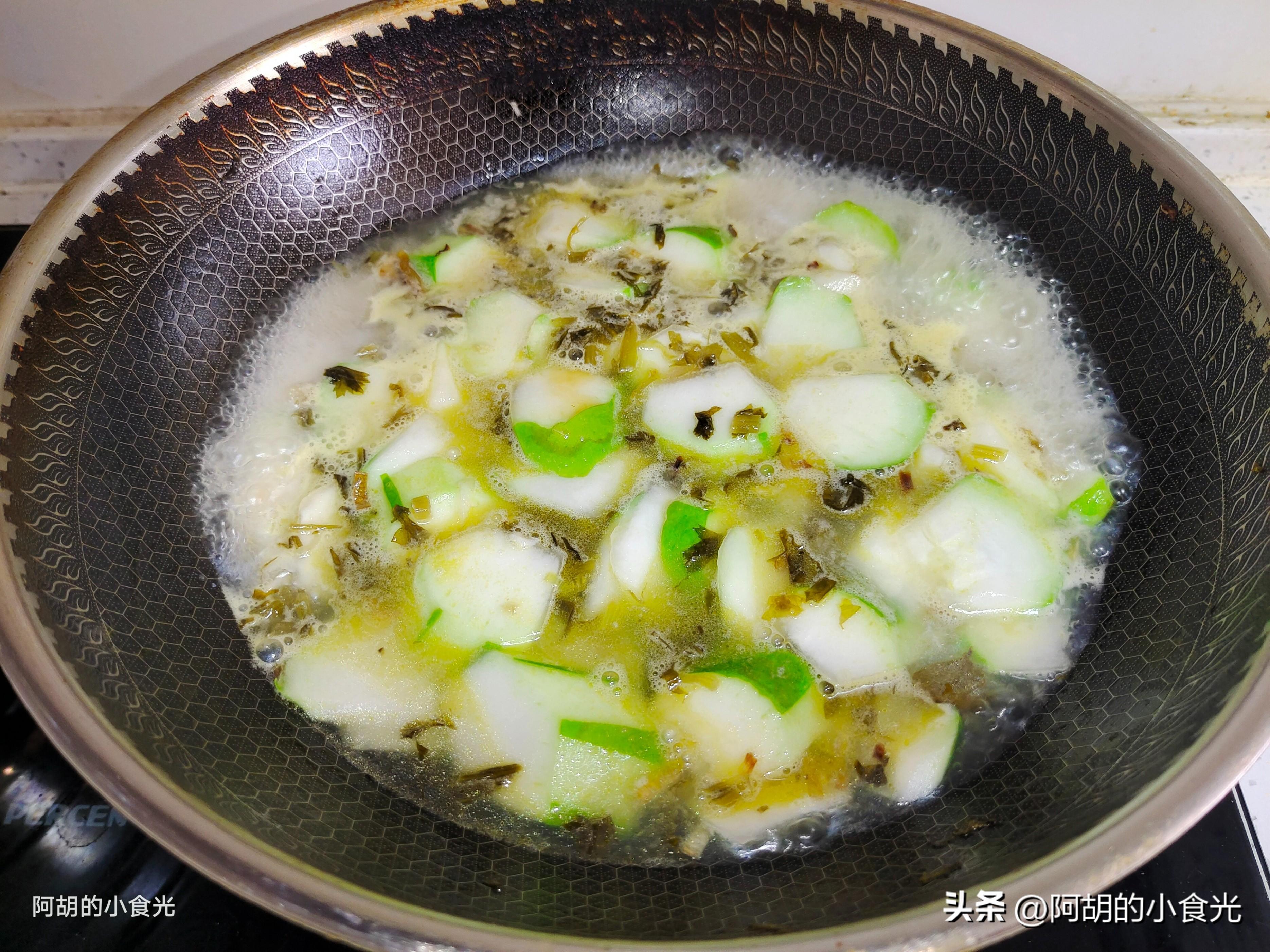 小時候農村的菜園裏都會有那麼幾株瓠子瓜,夏季大汗淋漓之時就喜歡來一碗瓠子清湯,什麼搭配也沒有,只是一碗瓠子清湯,簡單的食鹽調味即可,清香開胃又解暑。今天再搭配小海鮮和雪菜來豐富一下味道,保證鮮美更上一層樓,妥妥的下飯好菜。