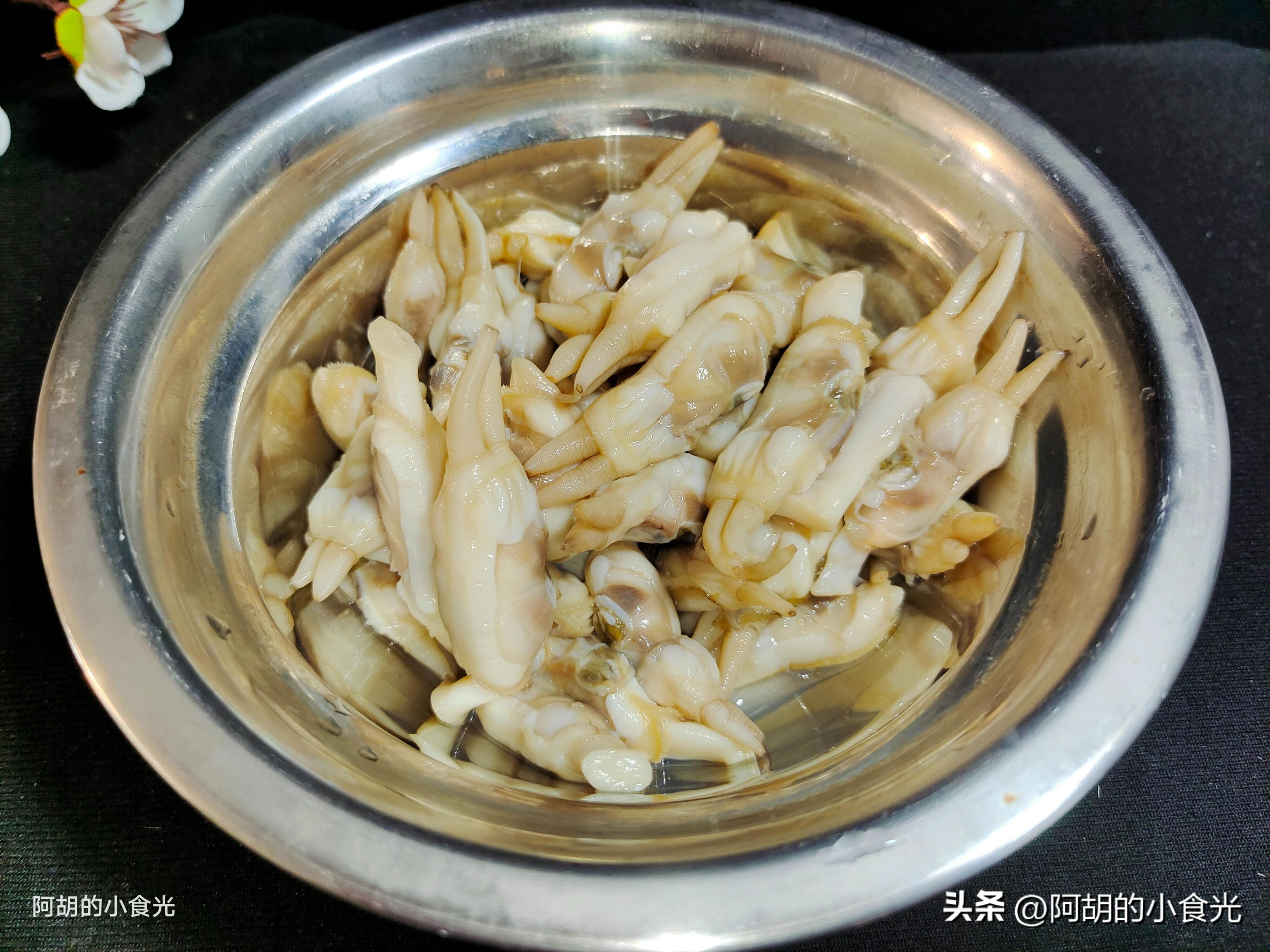 第二步:準備鮮活的蟶子400克左右,買回家後先用淡鹽水浸泡一個小時左右,讓其吐乾淨體內的泥沙,而後再用流水多多淘洗幾遍。洗乾淨後再倒入鍋中,添入適量的清水大火煮開至其完全開殼。撈出冷卻後再將蟶子肉挑出來備用。留下的煮蟶子原湯可以倒入盆中靜置沉澱一下待用。