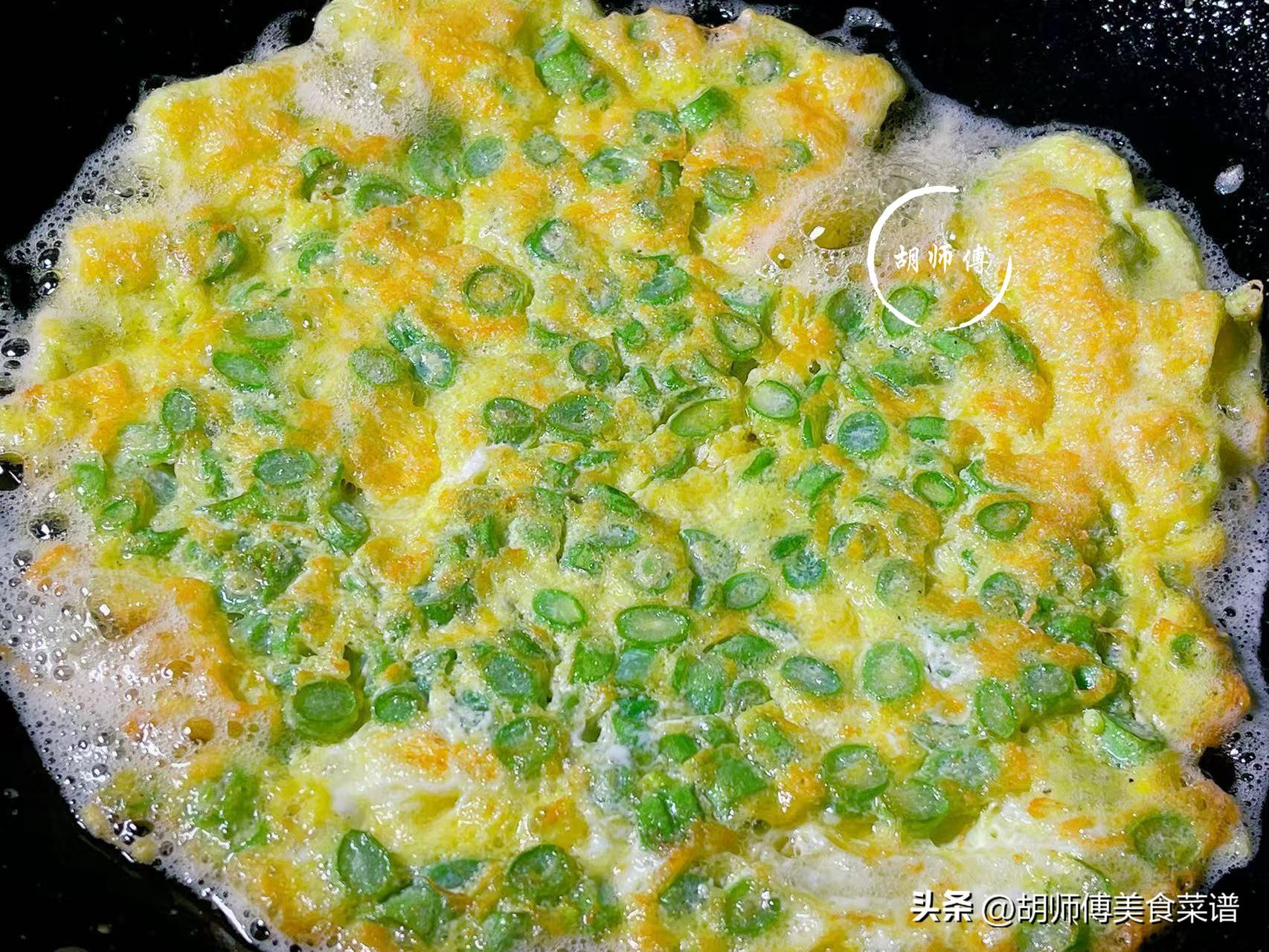 第四步:鍋中放入適量油,等油溫燒到6成熱後,將雞蛋四季豆液倒入鍋中,大火將一面煎成金黃色後,再把另一面也煎成金黃色即可起鍋食用。做好的雞蛋煎四季豆一定要趁熱喫,放涼了口感差一截!